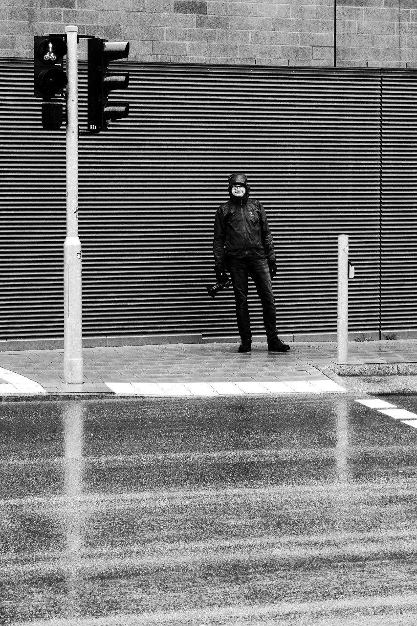 Der Rest war Regen. Und wie du an den Farben in den Bildern siehst, fotografierte ich nun mit der Leica SL2. Das Wetter war wirklich optimal, um den Spritzwasserschutz der neuen Leica zu testen. Die IP54-Zertifizierung hat mich absolut ruhig die Leica bei teilweise schlimmen Sprühregen nutzen lassen. Auch das verwendete Vario-Elmarit-SL 1:2.8–4/24–90mm ASPH ließ sich nicht aus der Reihe bringen. Nur irgendwann waren meine Klamotten durch und die Handschuhe kaltnass. Spätestens als ein rücksichtsloser Autofahrer an einer Strassenkreuzung durch eine große Pfütze fuhr und vor allem Bjørn komplett durchnässt zurück ließ, war Zeit abzubrechen. Eine warme Couch ist ja auch mal ganz nett – an einem regnerischen Sonntag in Hamburg.