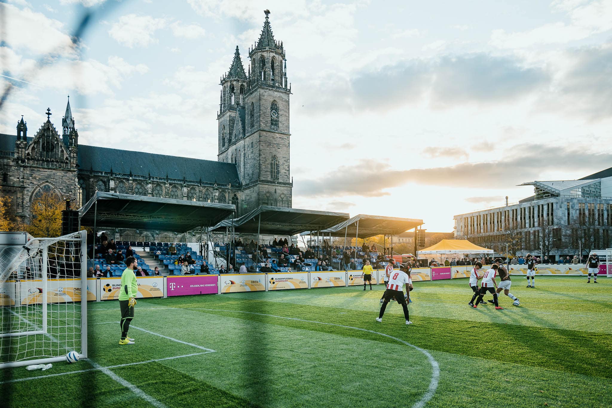 Mit einem Finalspieltag in einer Innenstadt die Saison zu beenden, ist grundsätzlich gut gedacht. So kann der Blindenfussball in der Mitte der Gesellschaft zeigen, welch tolle Leistung die Akteure auf den Platz bringen. Nun war ich letztes Jahr in Saarbrücken und dieses Jahr in Magdeburg und kann nur sagen, dass das Konzept grandios gescheitert ist. Da werden Tribünen für mehrere Dutzend Menschen aufgebaut, aber wenn die Anhänger vom FC St. Pauli nicht angereist wären, wäre diese leer geblieben.