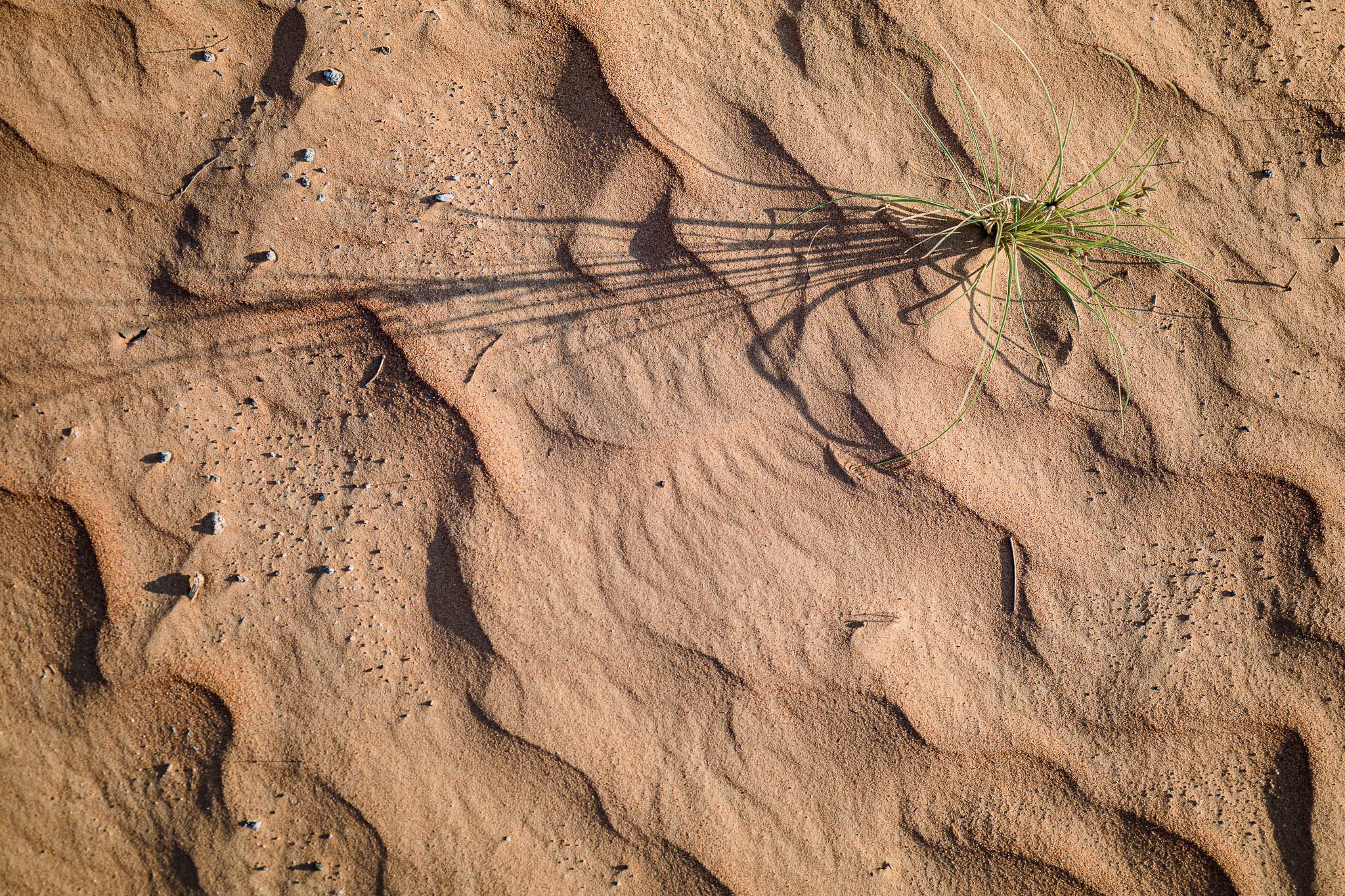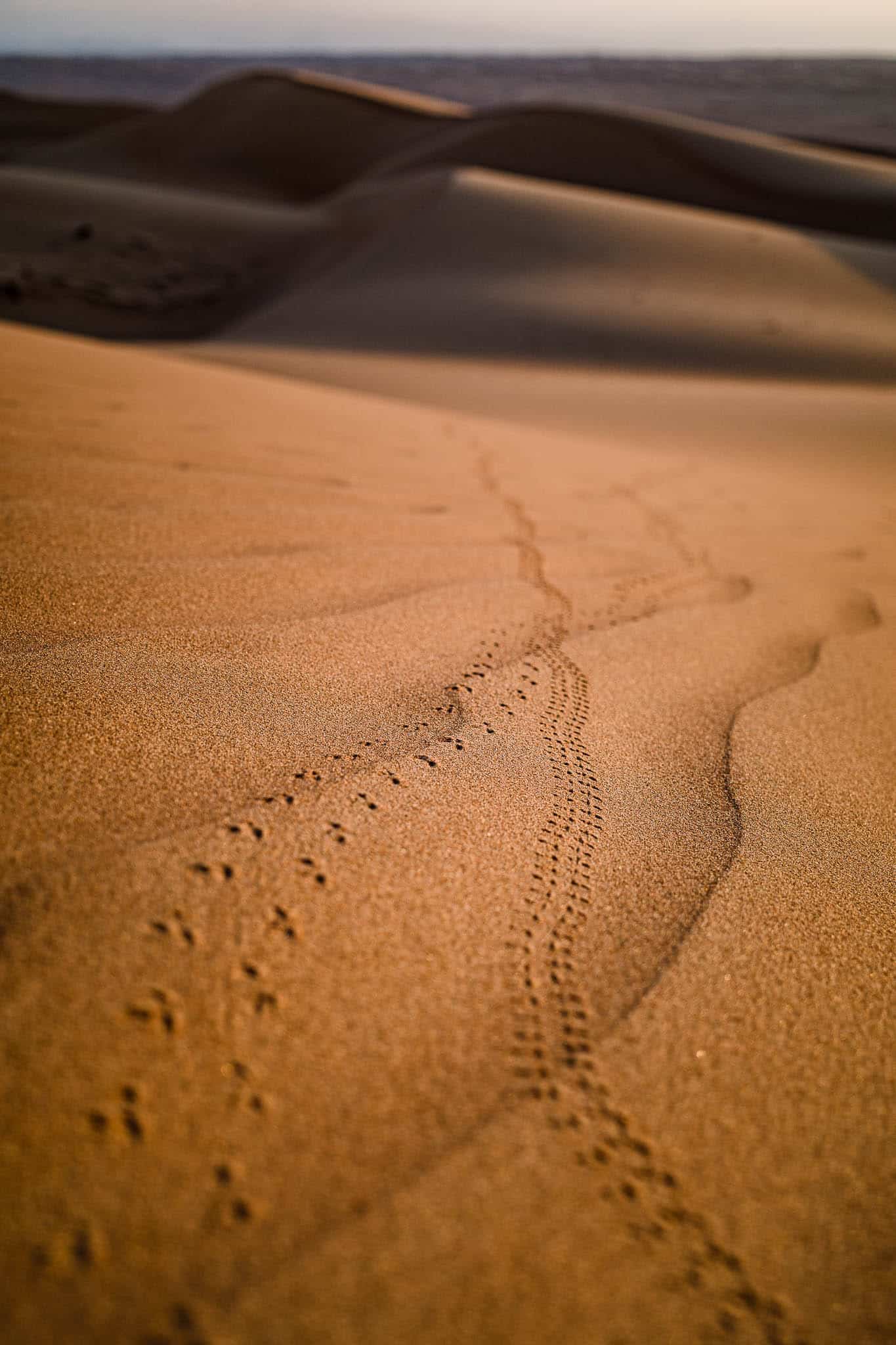 Und wir wurden nicht enttäuscht. Diesmal hatten wir alleine und ohne Autos das Erlebnis, dass wir uns vor der Anreise gewünscht hatten. Auch wenn ich die Entscheidung noch vor dem Frühstück den ersten Sandberg zu erklimmen, kurzzeitig verflucht hatte. Mit nackten Füssen im warmen Sand zu wandern und manchmal ins kalte Erdreich einzubrechen, entschädigte für die körperlichen Anstrengungen. Wüste ist eben doch was besonderes!
