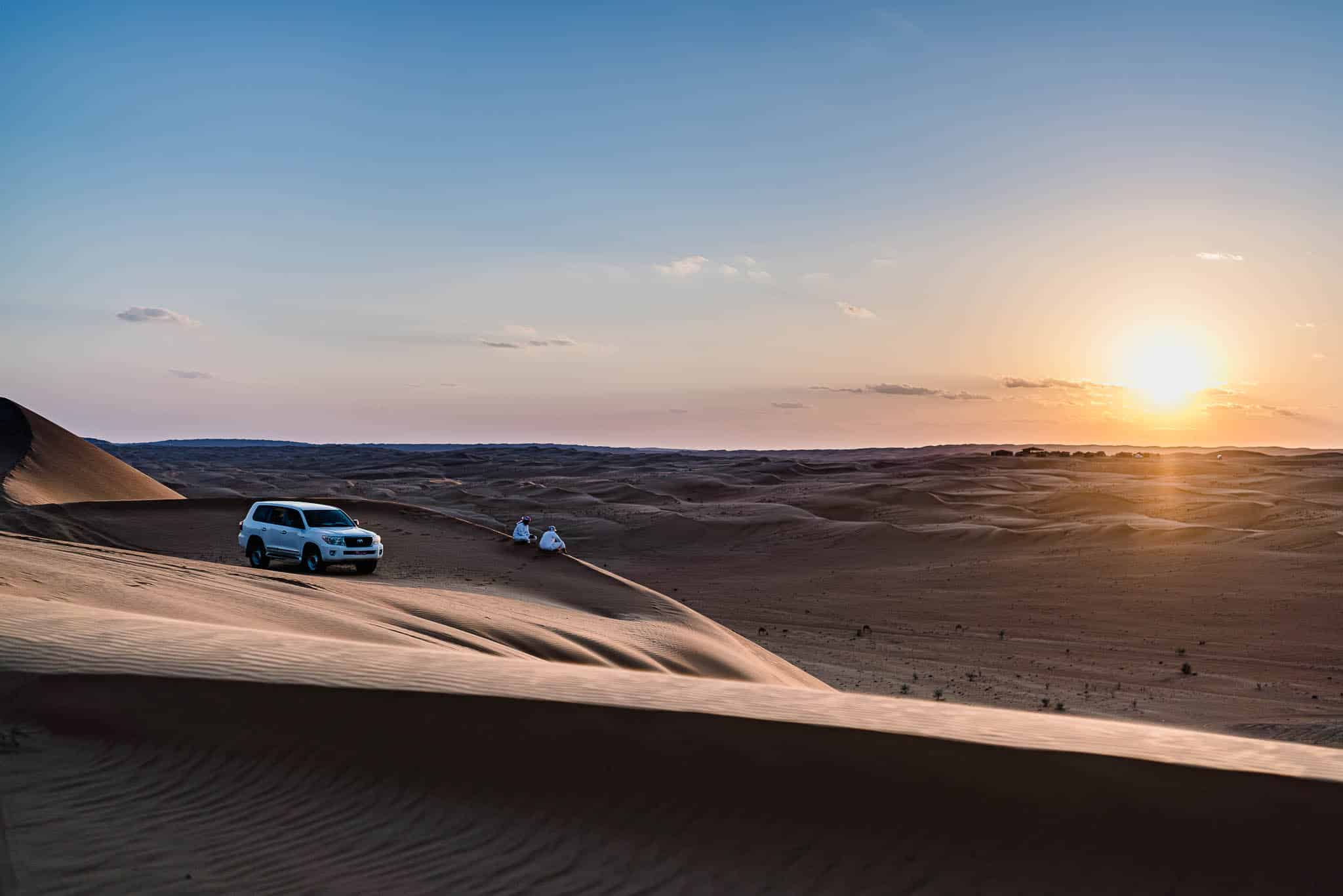 Den Rest des Tages überlassen wir das Fahren auf den Sandpisten von Wahiba Sands aber lieber den Profis. Sonnenuntergang in den Dünen steht auf dem Programm und wir freuen uns auf sandige Bilder bei tiefstehender Sonne. Ich habe ein kleines Video auf YouTube hochgeladen, um dir einen Eindruck der Landschaft zu verschaffen.