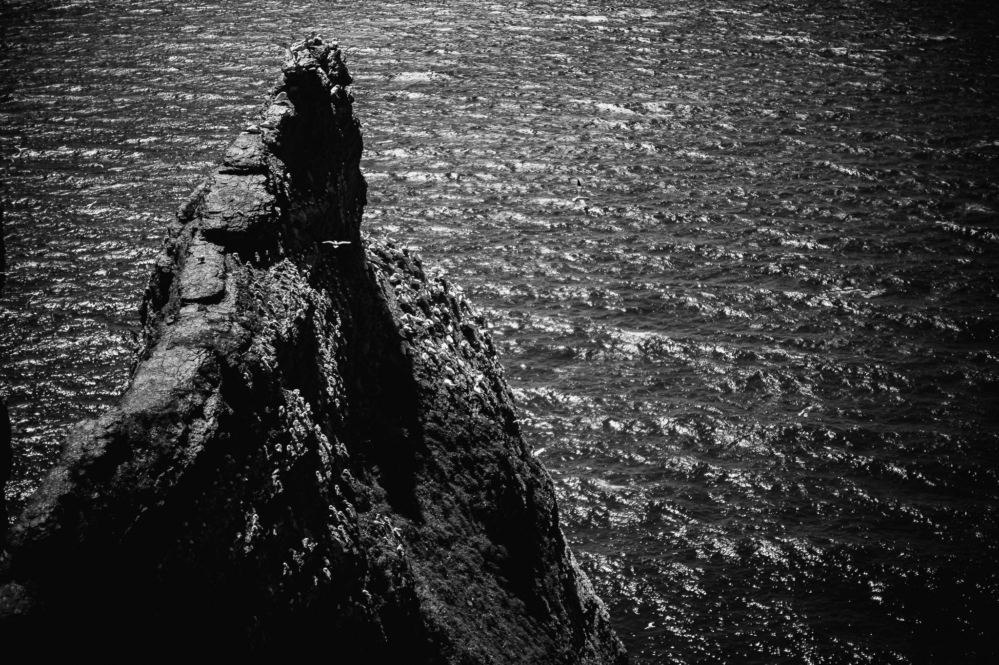 Fotografie war bei meinem zweiten Besuch im Sommer 2020 im Fokus. Und kurz vor der Abreise hatte ich die völlig absurde Idee, viel Kameragepäck gegen die Leica Monochrom und dem 50er Noctilux einzutauschen. Tiere mit 50mm fotografieren und dazu noch in schwarz-weiß klingt ein wenig verrückt. Aber die Basstölpel sind gut zu erreichen und das Wetter hat mir in die Hände gespielt. Und ja, die folgenden Bilder sind mit der uralten und langsamen CCD Monochrom entstanden. Ich mag die Atmosphäre der Fotos…