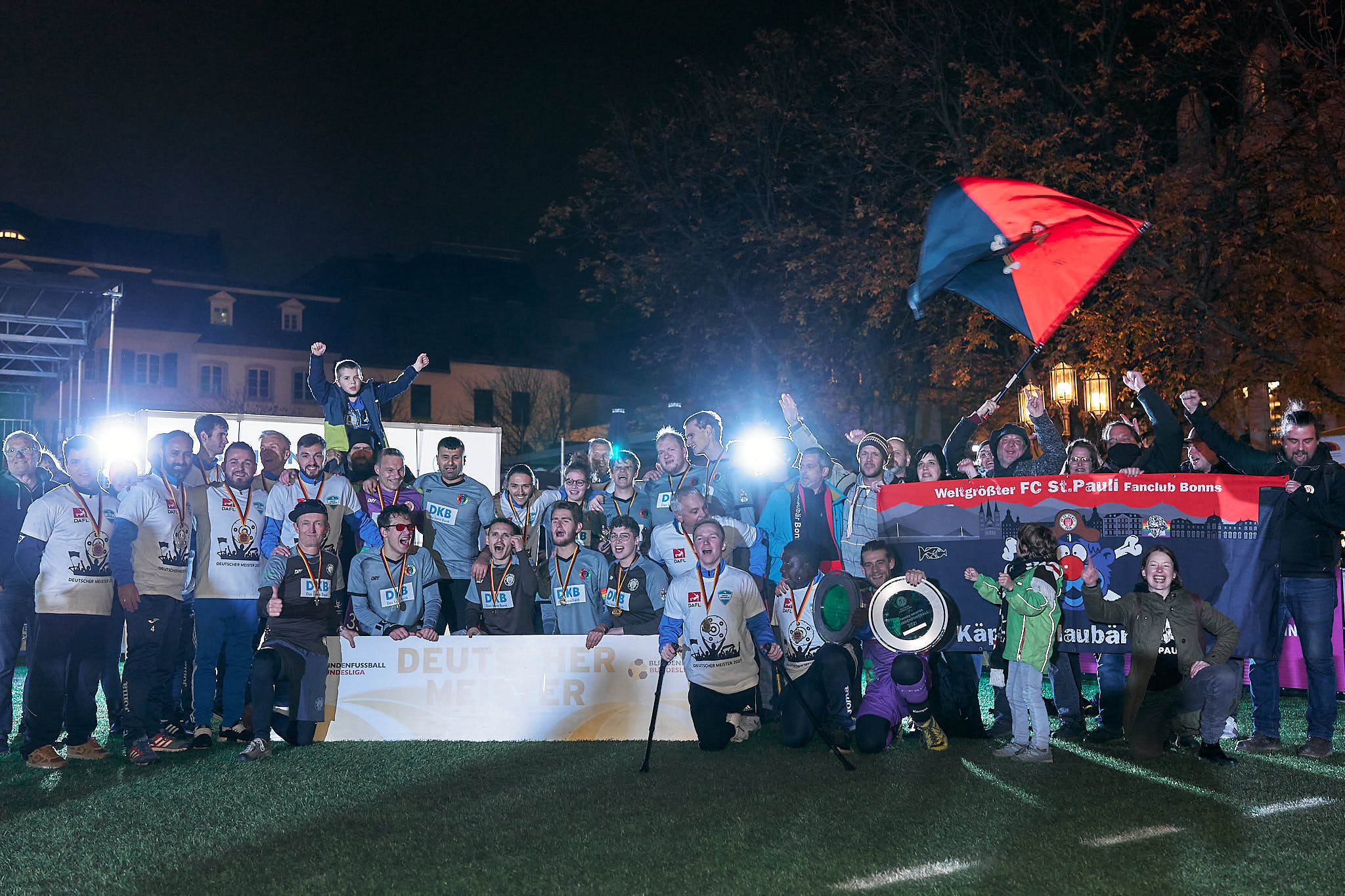 Unter den Augen von Beethoven die Meisterschaft zu erringen und unter der Fahne der Blaubären (FC St.Pauli Fanclub Käptn Blaubär Bonn) diese zu feiern ist schon was besonderes. Für unsere Blindenfußballer war der Münsterplatz ein gutes Pflaster. Und dass die Fotos wieder vom feinsten sind war zu erwarten. Schöner Bericht, ausdrucksstarke Fotos und das Ergebnis….passt alles zusammen.