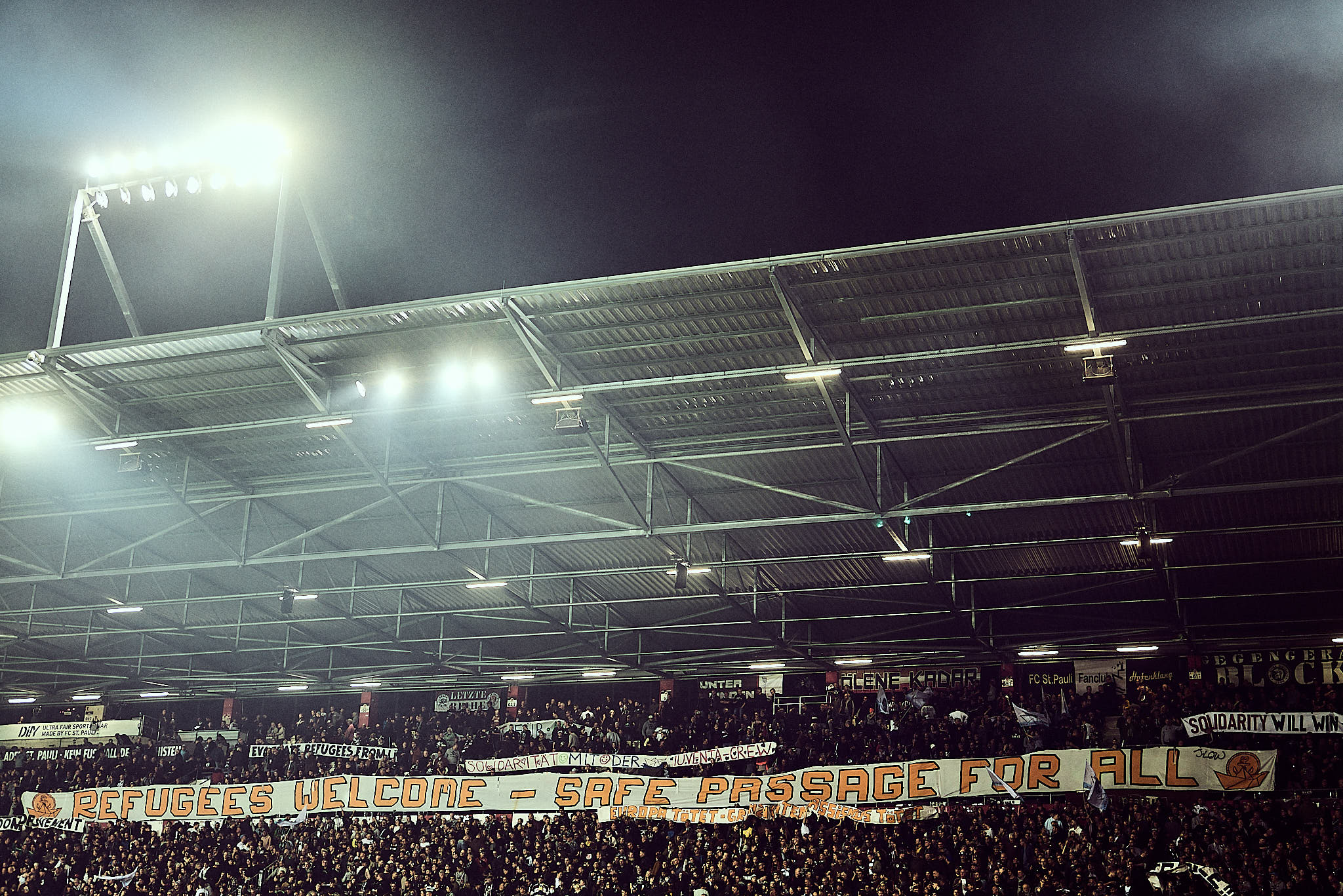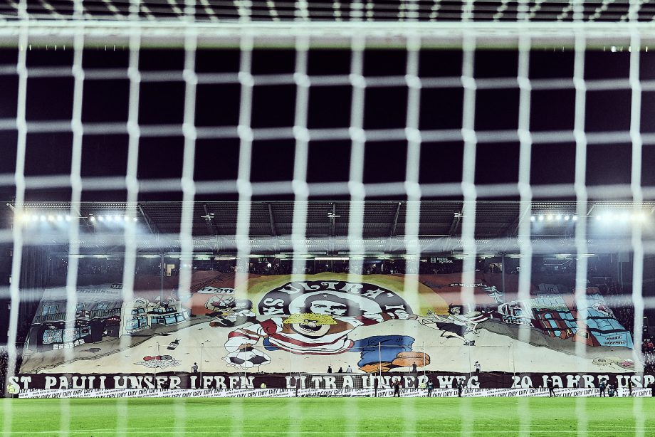 Falls du ein größeres Bild von der USP Choreo haben möchtest, habe ich noch eine kleine Überraschung. Von der Blockfahne habe ich ein Panorama aus mehreren Fotos gemacht und das zu einem Bild zusammen gesetzt. Dadurch kannst du die feinen Details super sehen. Runterladen kannst du dir das hier. Viel Spaß damit.
