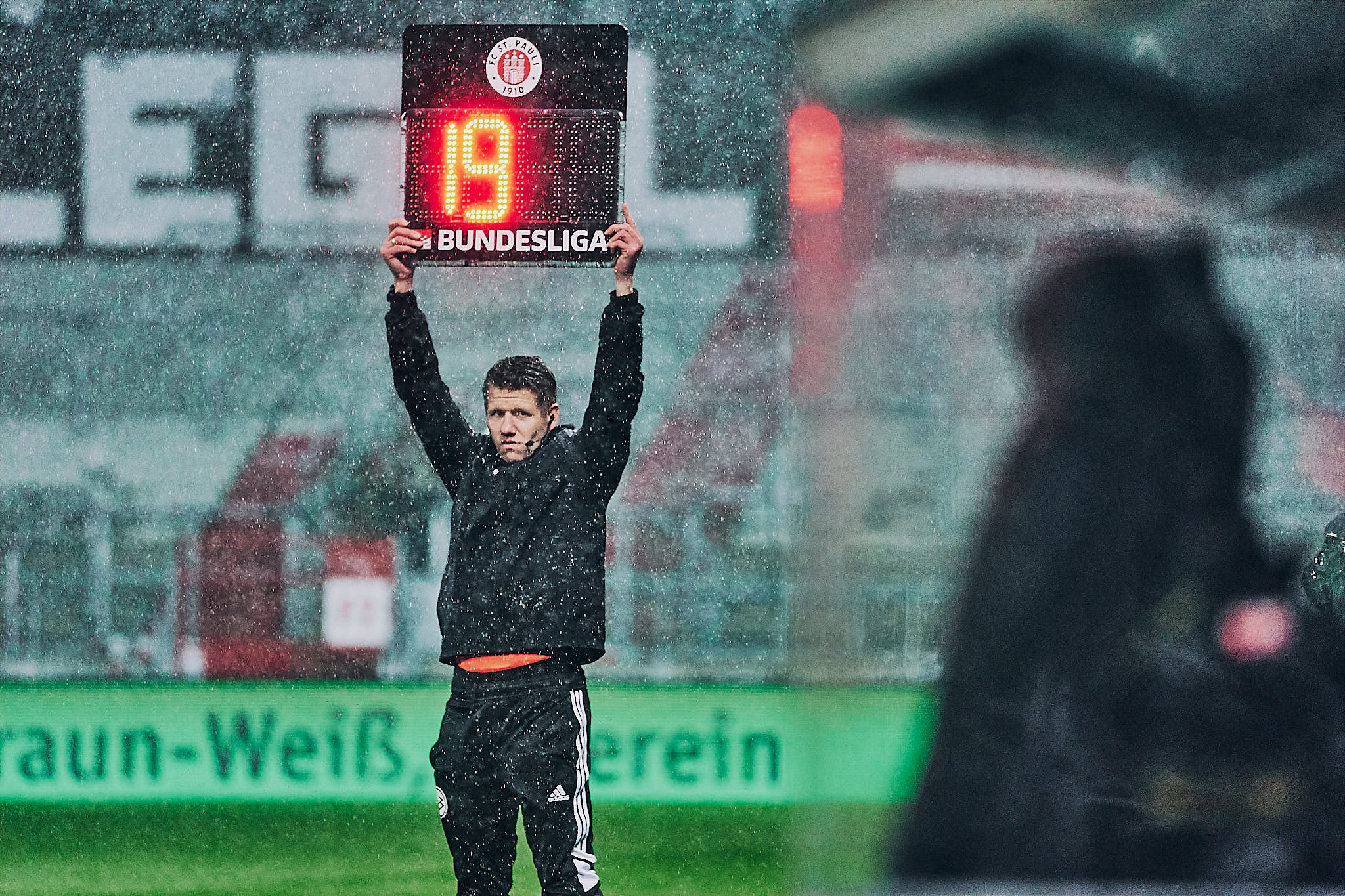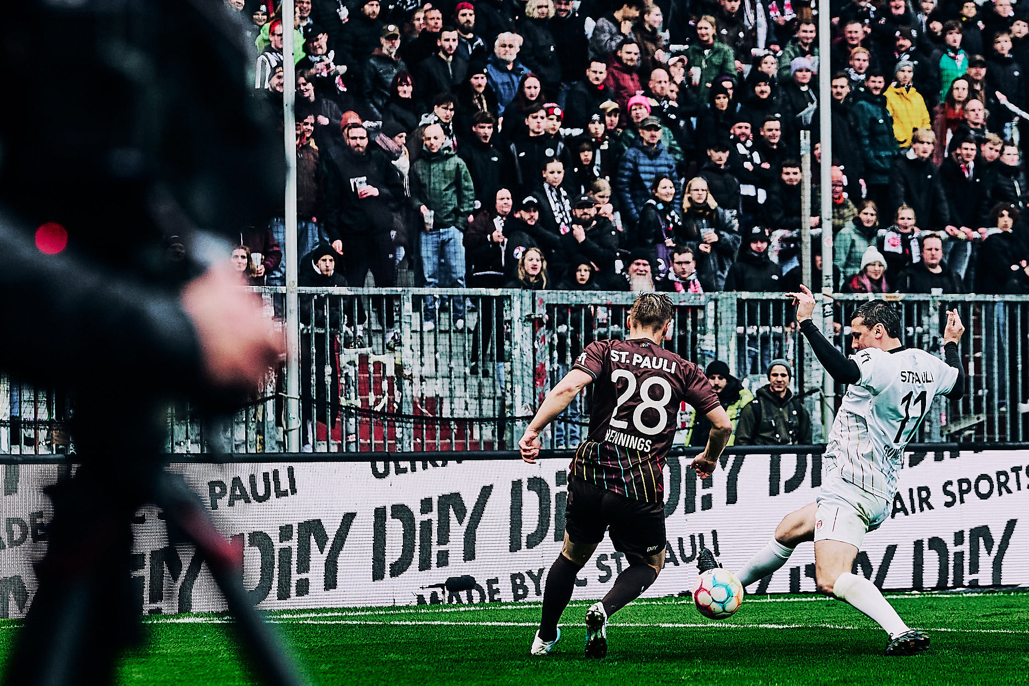 Eine besondere Zuschauerin hat es leider nicht zum Spiel geschafft. Antje hat rund zwei Jahrzehnte das Geschehen am Millerntor fotografisch festgehalten. Auf ihrem Fotolaibchen prangte die Rückennummer 27. Leider hat sie letzte Woche ihren Kampf gegen den Krebs verloren. Ich habe ihr viel zu verdanken und werde sie vermissen. Es war ein sehr emotionaler Moment, sie vor dem Spiel über die Videoleinwand mit einem Gruß flimmern zu sehen. Da blieben dann auch die Spieler beim Aufwärmen mal kurz stehen.