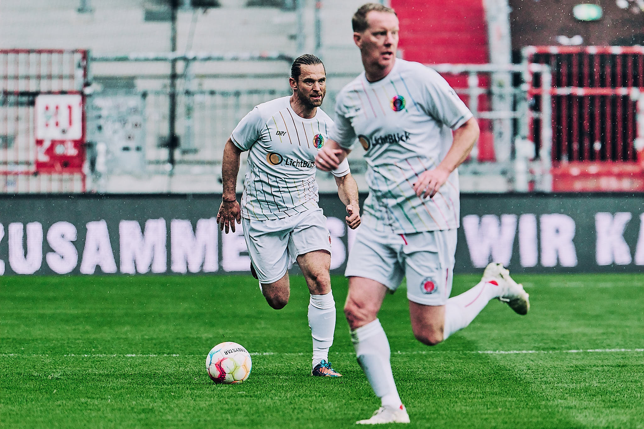 Lustig war noch, dass Ewald Lienen als Trainer des Verliererteams gute 10 Minuten nach Anpfiff kam. Er hat sich nicht über den heutigen Stau auf den Elbbrücken beschwert, sondern ist mit der S-Bahn ab Harburg gefahren. Oder Rouwen Hennings, der natürlich als aktueller Spieler noch ordentlich Puste hatte, musste sich von wechselnden Begleitern bei seinen Tempoläufen lachende Schimpfkanonaden anhören. Apropos Puste: Florian Lechner erscheint topfit – könnte meiner Meinung nach immer noch für einen mittelklassigen Zweitligisten die Flanken schlagen. Einige andere wirkten auf den ersten Blick nicht mehr ganz so formschön, hatten aber immer noch eine erstaunliche Power. Hut ab, ich wünschte, ich wäre jemals so fit gewesen.