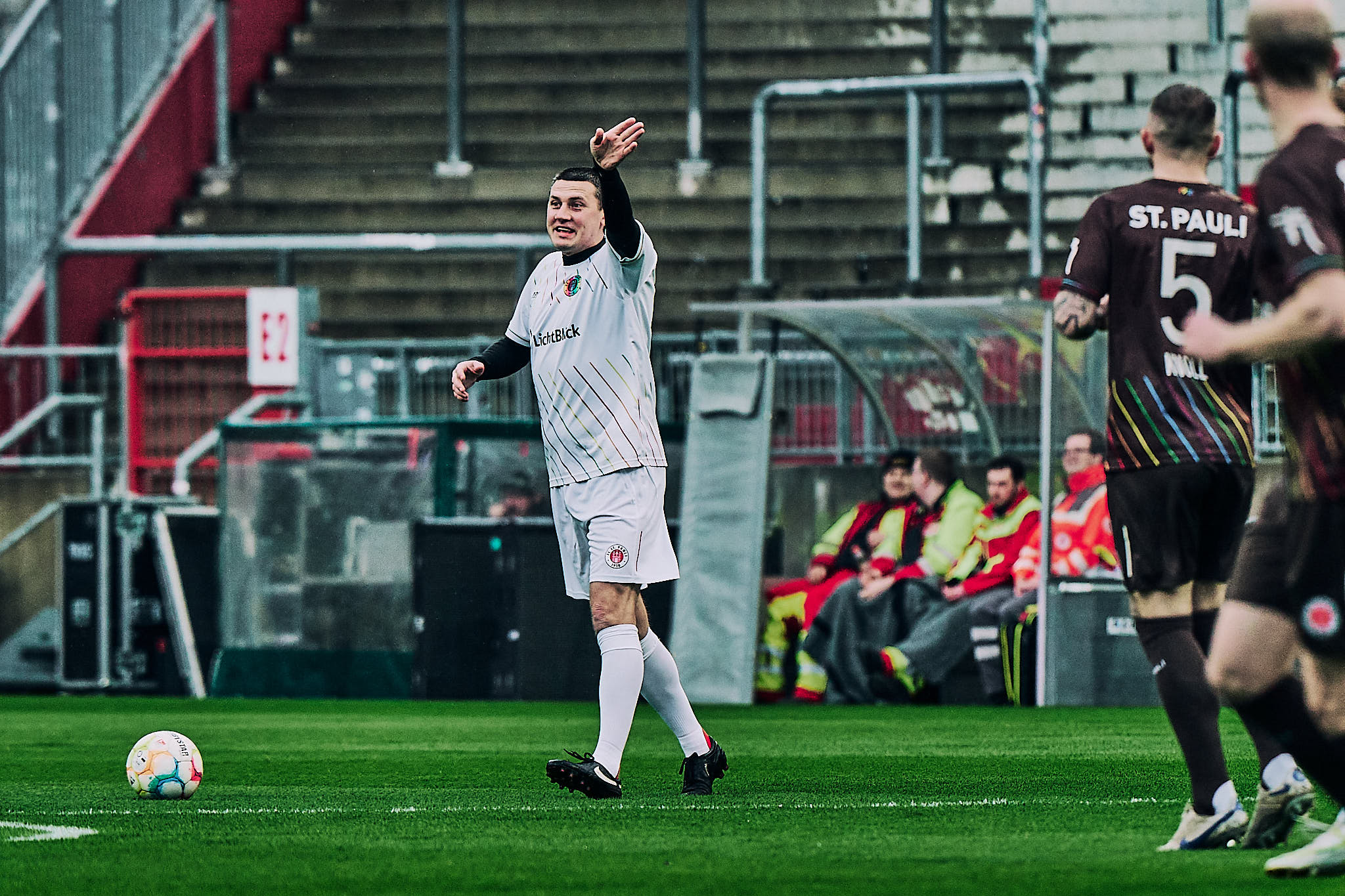 Zum Gelingen trugen natürlich auch die teilweise von weither angereisten Spieler:innen und ein gut gelauntes Publikum bei. Über 10000 Menschen waren ans Millerntor gekommen, um Schnecke ein letztes Mal zuzujubeln. Da stört es dann auch nicht, dass der Nachwuchs öfter beim Abschiedsspiel traf als der Herr Papa (in seiner kompletten Karriere).