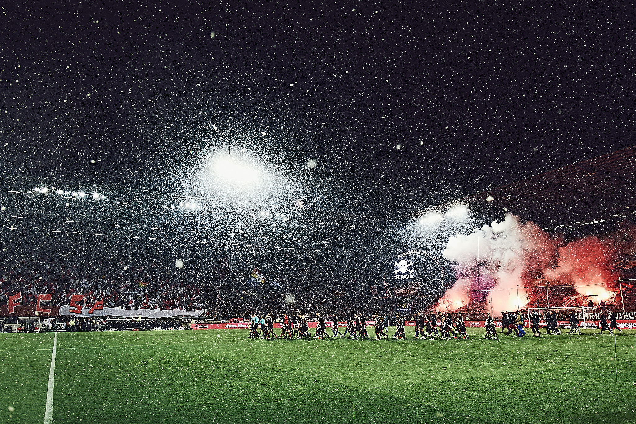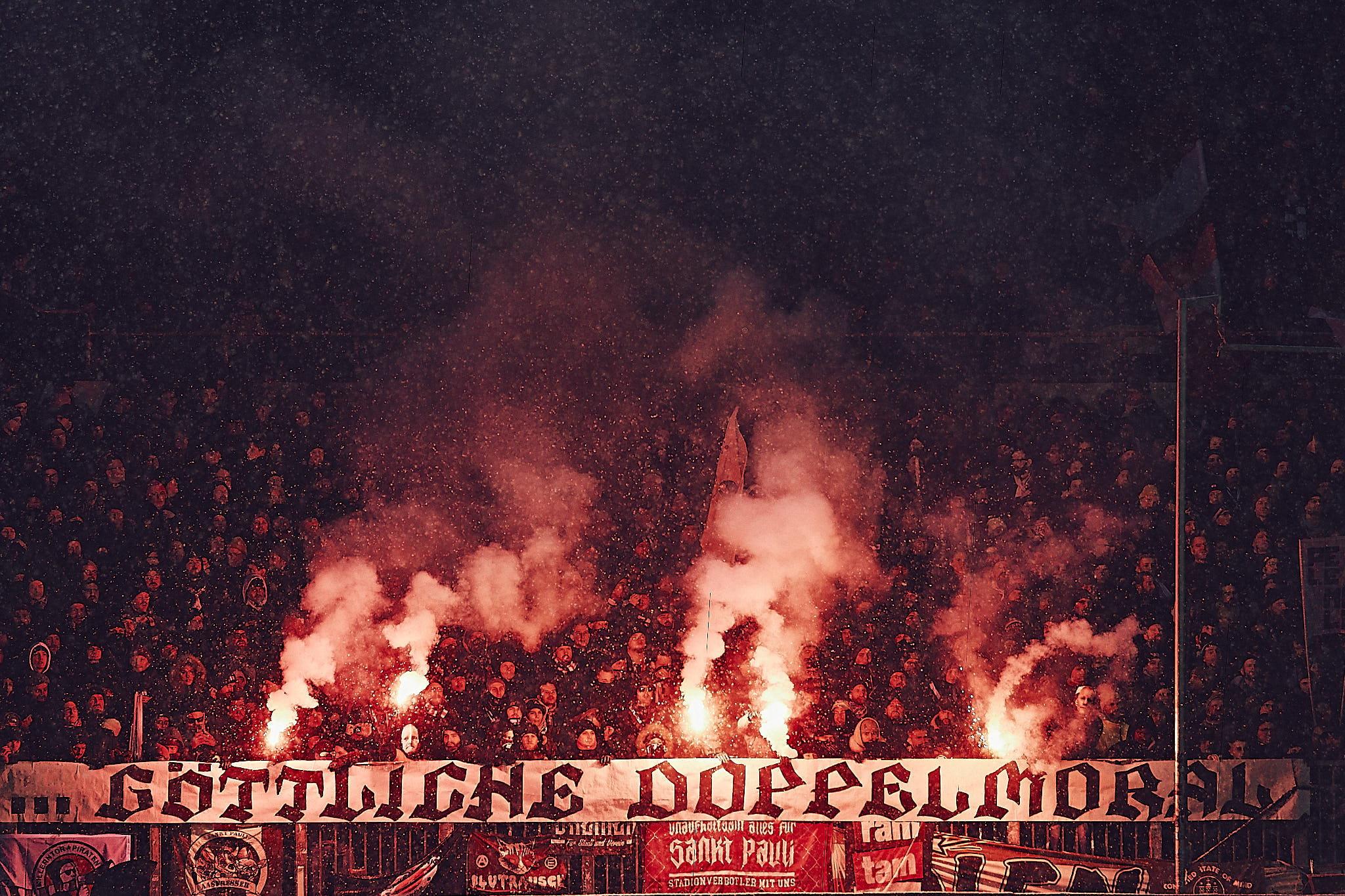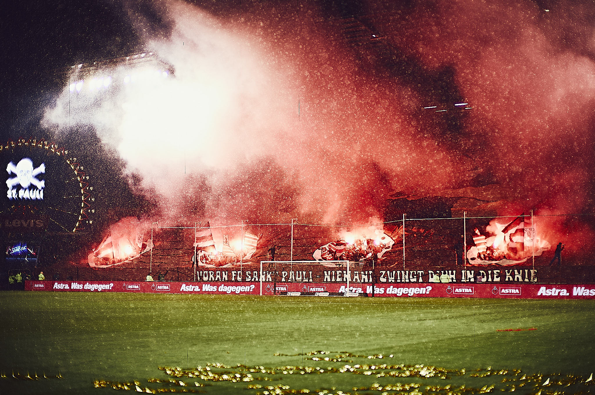 Ohne Details zu kennen, waren die Stadionverbote einiger Fans des FC St. Pauli durch den eigenen Verein wohl nicht ganz so harmonisch abgelaufen. Anders sind die entsprechenden Transpis und das übermäßige Abbrennen von Pyro kaum zu erklären. Die Braun-Weiße Hilfe hat sich zum Verfahren klar positioniert. Ich kann das nicht beurteilen – ich teile nur meine Beobachtungen am Spielfeldrand.