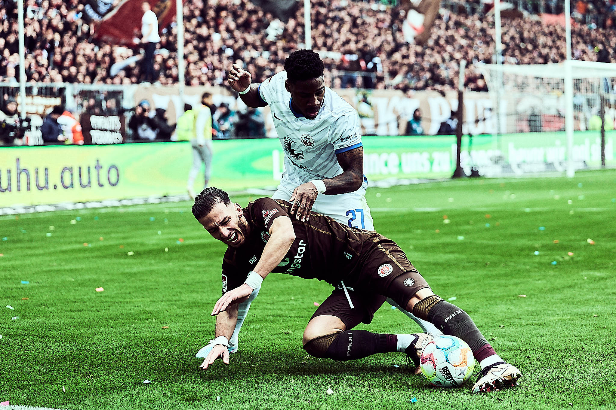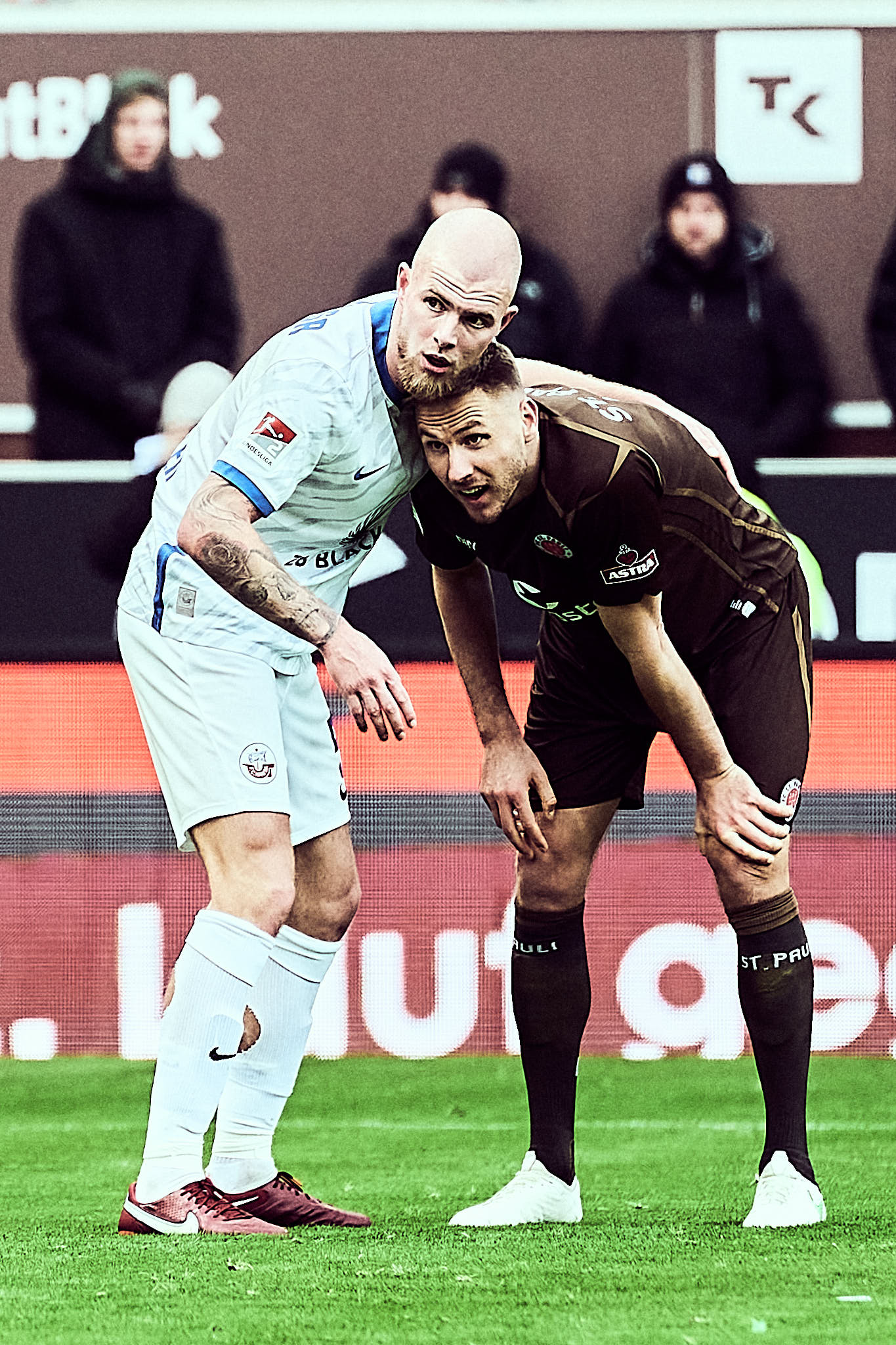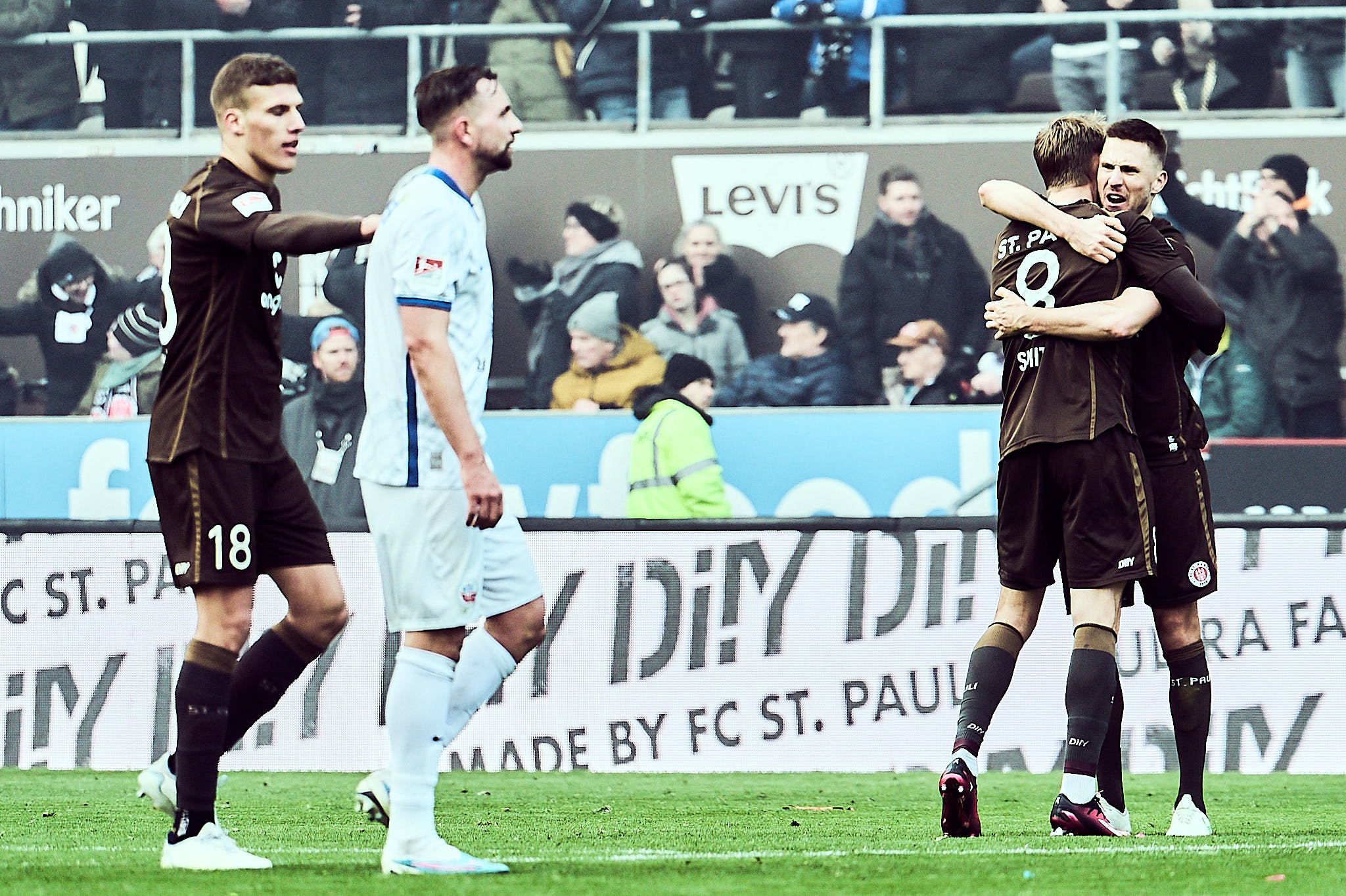 Das Spiel selbst ist dann schnell erzählt: Rostock spielt, ist vor dem Tor harmlos, St. Pauli reicht ein Geniestreich von Oladapo Afolayan, der einen sensationell getimten Ball auf Jackson „Kopfballungeheuer“ Irvine flankt, der diesen kraftvoll ins Netz wuchtet. Kopfball versenkt, Kogge versenkt.