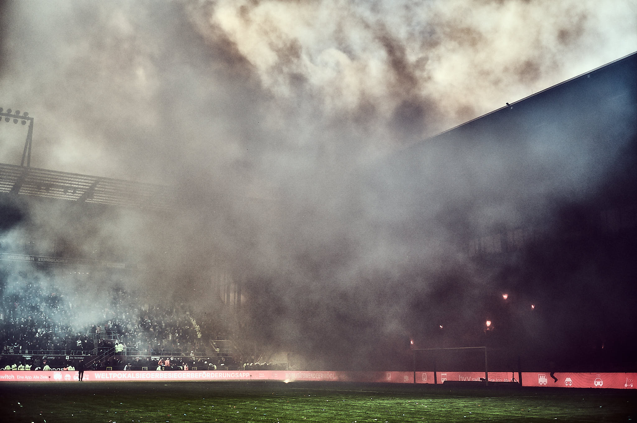 Dazwischen gab es viel Pyro und deutlich zu viel schlechtes Benehmen der Gästefans. Die Emotionalität der Ränge hat es mit wenigen Ausnahmen nicht auf den Rasen geschafft. Allerdings würde mich schon interessieren, was passieren muss, damit ein solches Spiel abgebrochen wird.