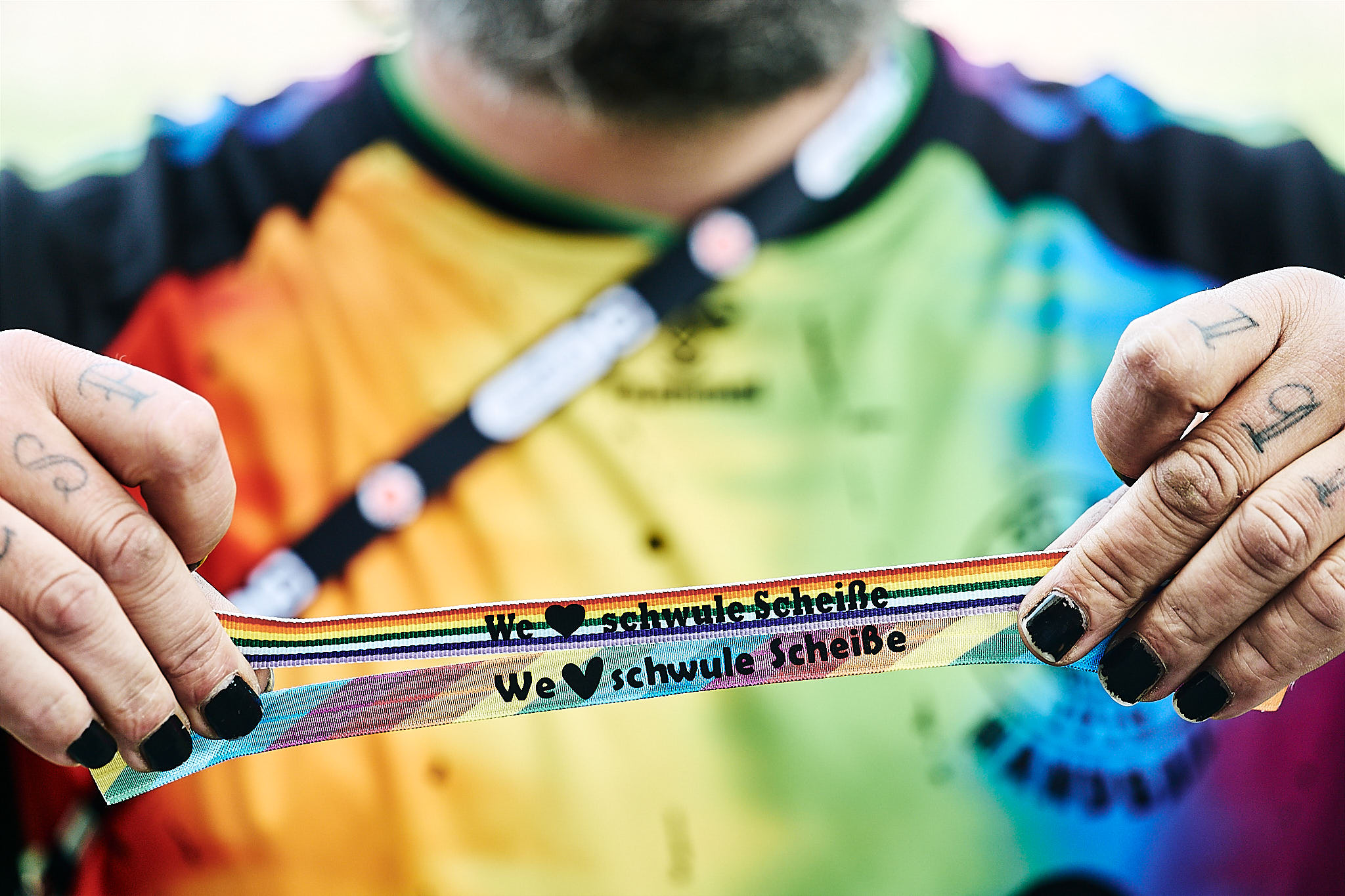Schön zu sehen, dass auch Wolfsburgs Torhüter Kamil Grabara die Kapitänsbinde in Regenbogenfarben trug. Schön zu hören, dass das Wolfsburger Team durch die Stadionregie mit „Over the Rainbow“ begrüßt wurde. Selbst Braunschweiger Fans hingen bei ihrem Spiel ein fettes Anti Behrens Banner an den Zaun – wobei das sicherlich auch was mit deren Antipathie zur nächstgelegenen Kleinstadt zu tun hat.