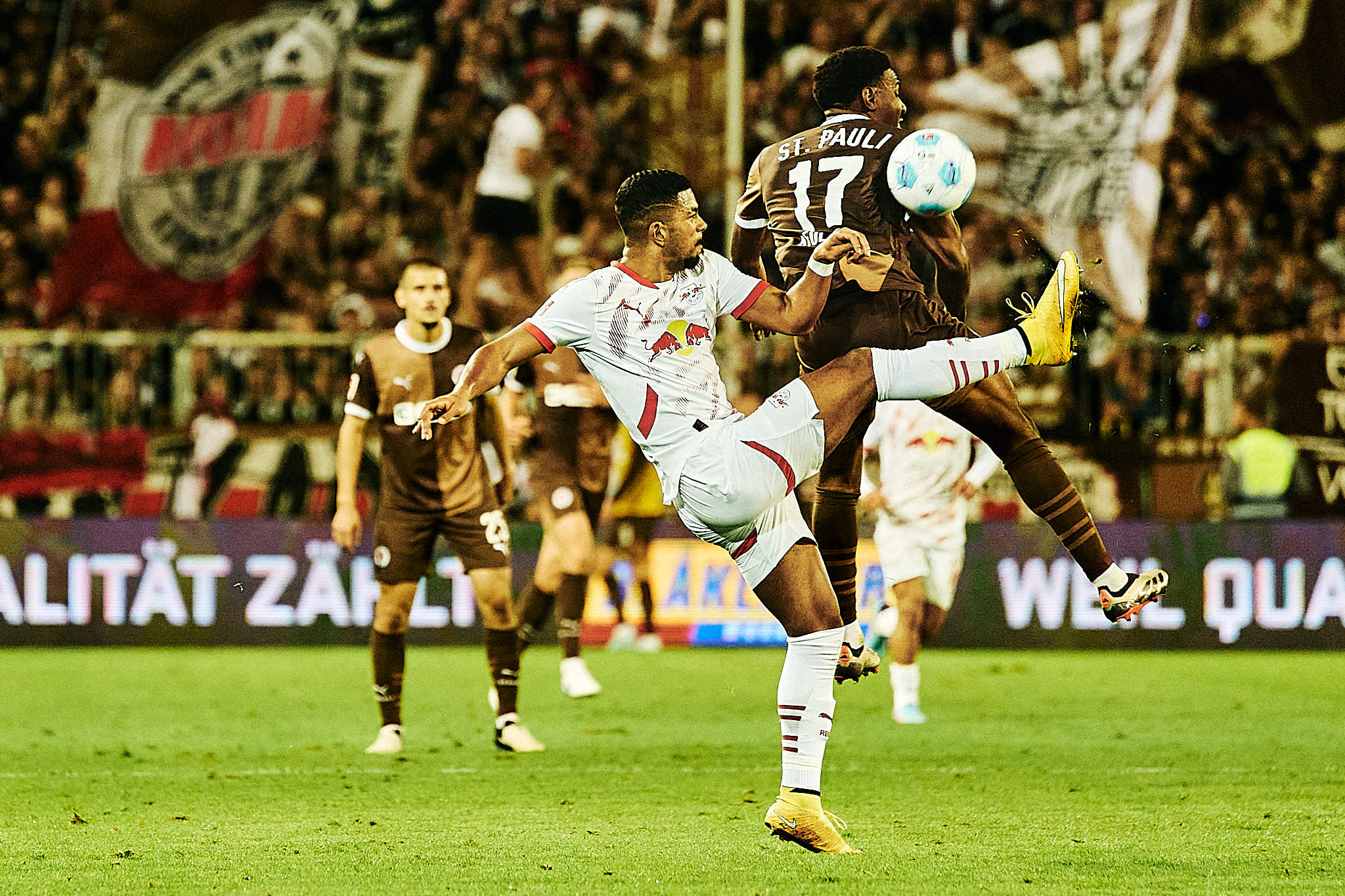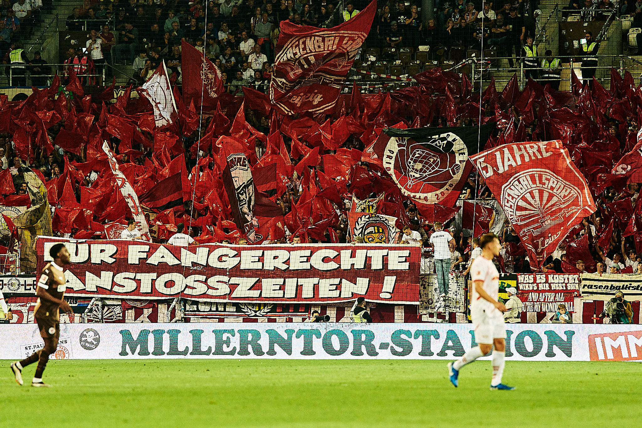 Bei aller Euphorie über den bemerkenswerten kämpferischen Einsatz der Spieler vom FC St. Pauli, muss aber auch gesagt werden, dass Leipzig nicht seinen besten Tag hatte und das Team einfach noch nicht eingespielt ist. Und wahr ist auch, dass bei den meisten Jungs in braun-weiß nach grob 75 Minuten der Akku auch ziemlich leer war. Da war es sicherlich hilfreich, dass die Stimmung am Millerntor ein wenig Rückenwind verschaffte. In der Nachspielzeit spielte Jackson Irvine dann einen sensationellen Pass in den freien Raum auf Scott Banks und dieser hätte mit etwas mehr Präzision das Stadion zum Beben bringen können.
