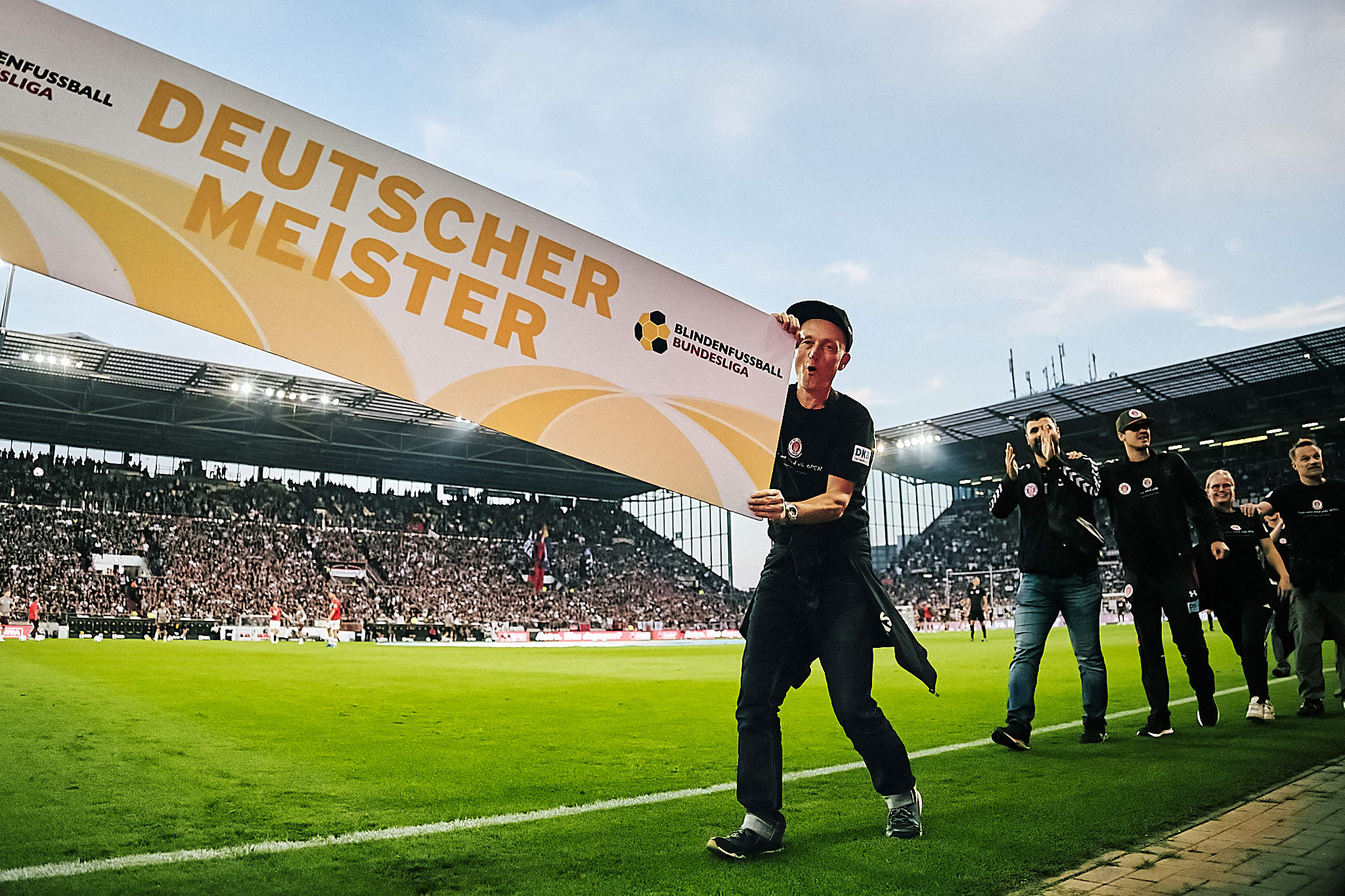 Vor dem Spiel gab es einen wunderschönen Einheizer. Die Blindenfussballer vom FC St. Pauli sind am Vortag nach 2022 zum vierten Mal Deutscher Meister geworden und wurden bei einer Stadionrunde ausgiebig gefeiert. Wer die Meisterinnen in einem internationalen Turnier in Hamburg sehen möchte, sollte sich das Wochenende am 12. & 13. Oktober im Kalender markieren. Dann gibt es am Borgweg die 17. Auflage des Masters Turnier „keep your mind wide open“.
