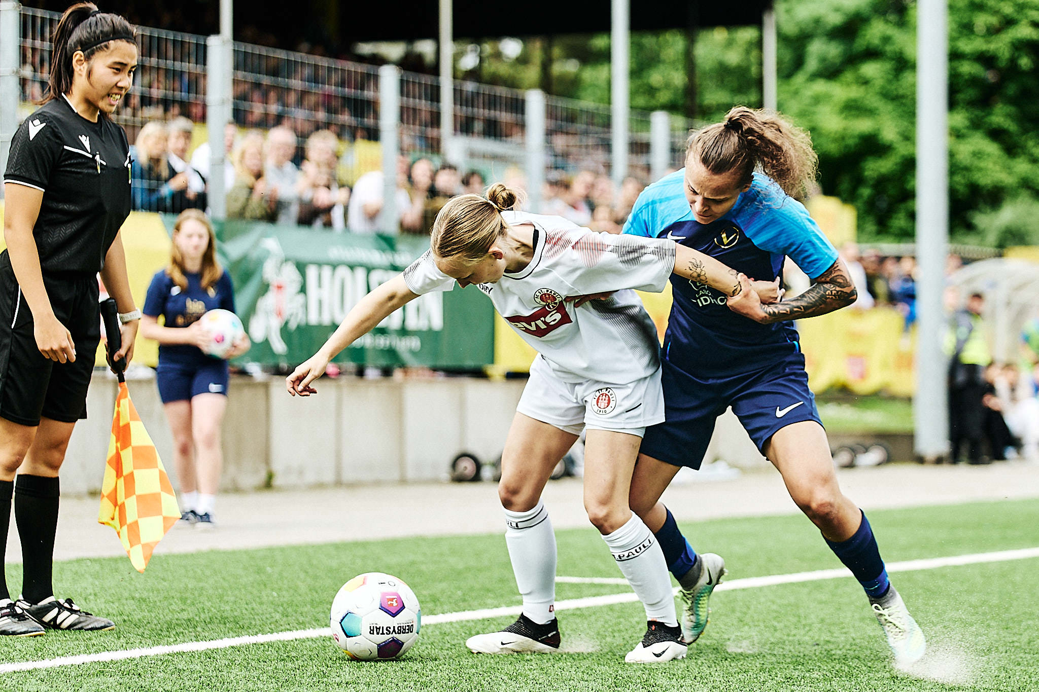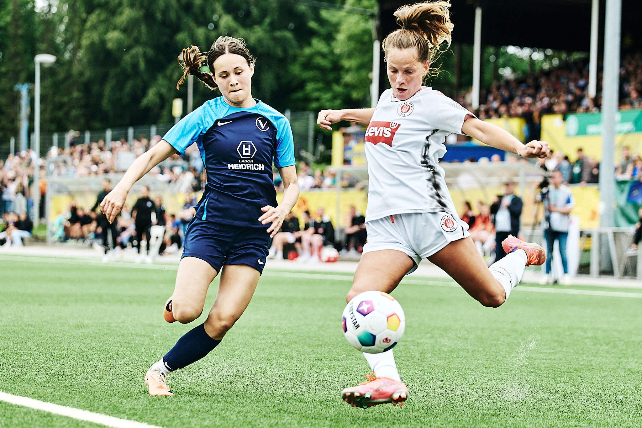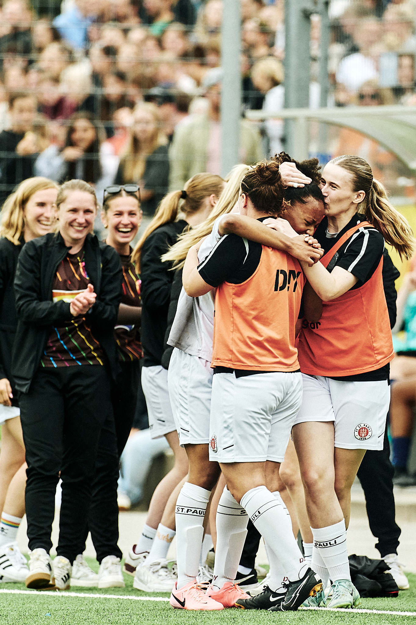 Vor über 4100 Zuschauerinnen ließen die FC St. Pauli 1. Frauen von der ersten Minute an keinen Zweifel, wer im Hoheluft Stadion als Siegerinnen vom Platz gehen sollte. Auch wenn SC Victorias Torfrau Angelina Dick mehrfach grandios halten konnte, war der Druck durch die braun weißen Frauen einfach zu groß. Die tollen Leistungen der letzten Meisterschaftsspiele konnten heute bestätigt werden. Eine Titelverteidigung war der verdiente Lohn.