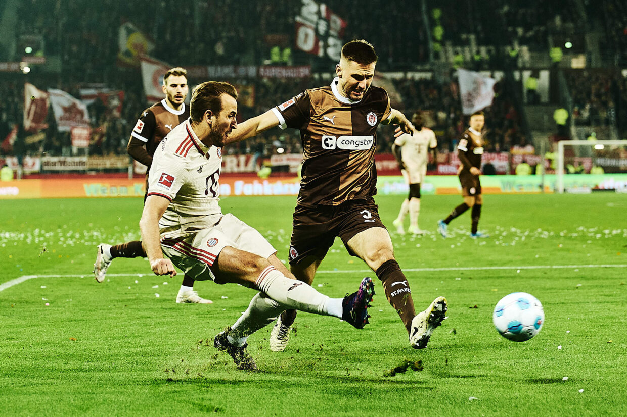 Die erste Viertelstunde läuft noch ganz gut für braun-weiß. Auch zwischendurch kann sich der FC St. Pauli hin und wieder mal vorne festsetzen. Insgesamt passiert das natürlich zu selten. Der FC Bayern München erreicht grob 75% Ballbesitz. Der Tabellenführer ist sehr schnell, läuft viel, rochiert die Positionen durch und hat Musiala. Der trifft in der 23. Minute sehr sehenswert aus grob 20 Meter zum 1:0. Diese Schusstechnik sieht man nicht oft am Millerntor.
