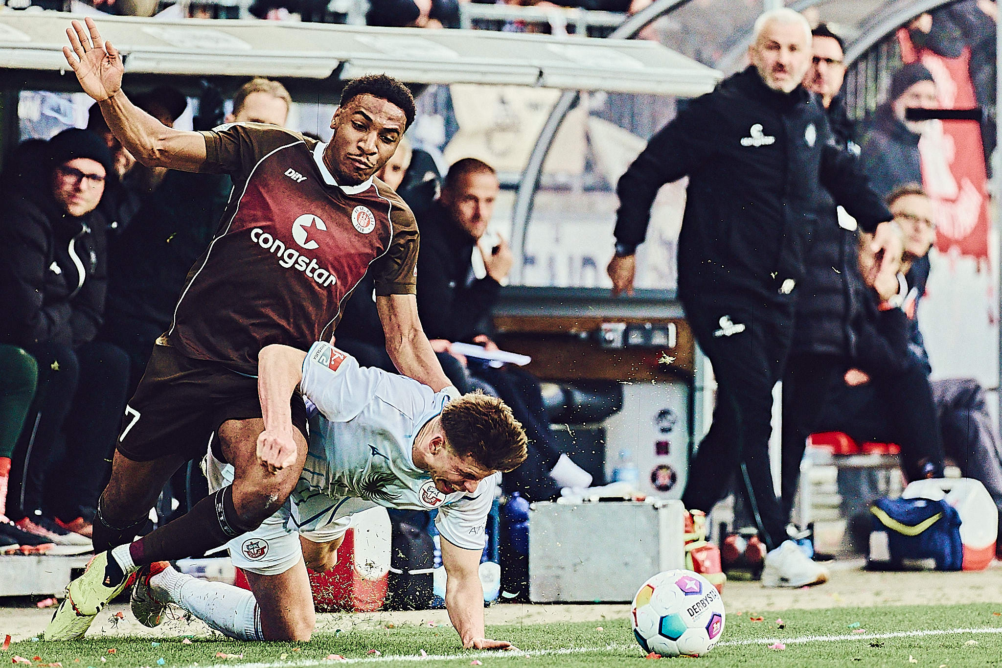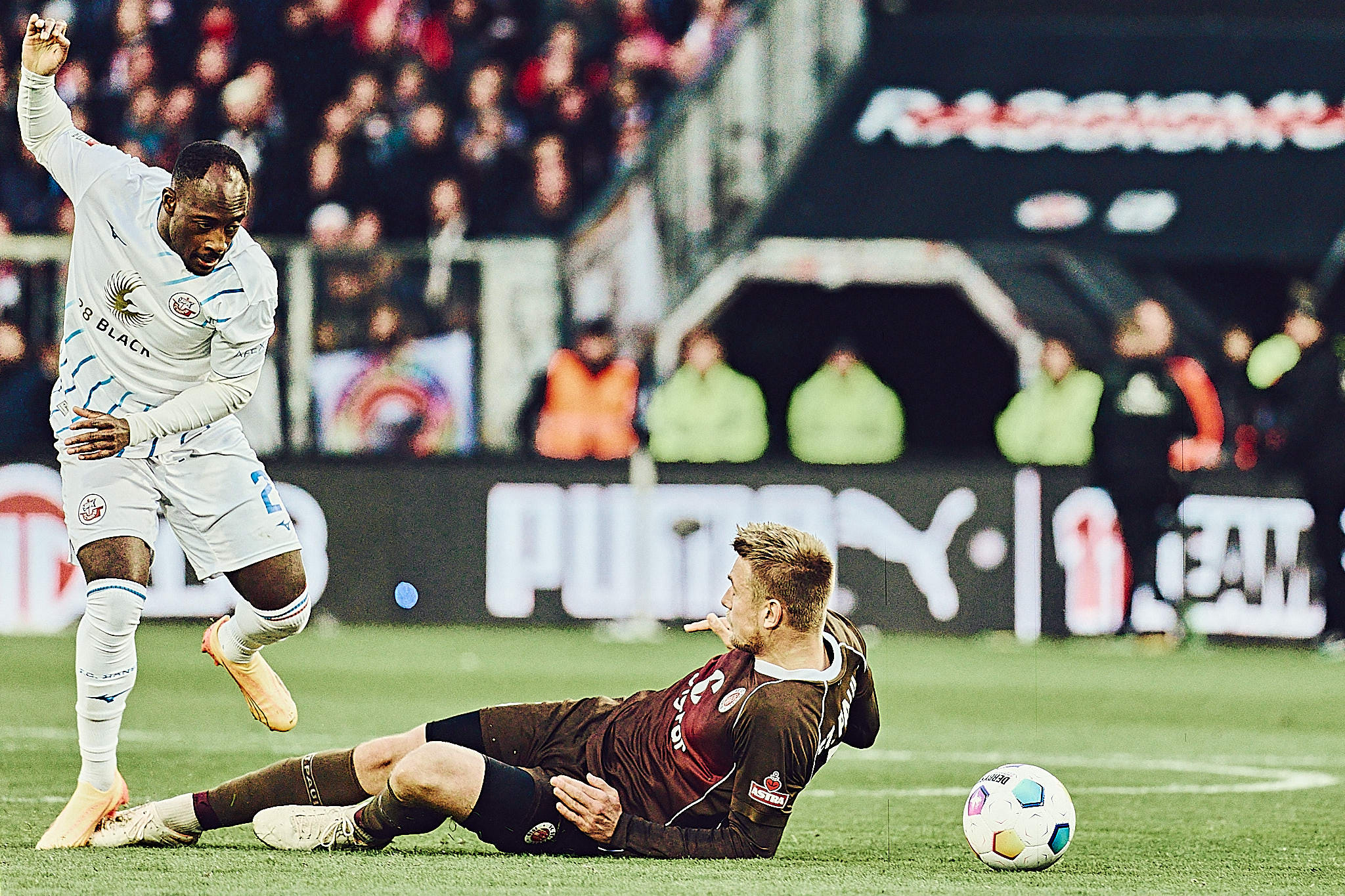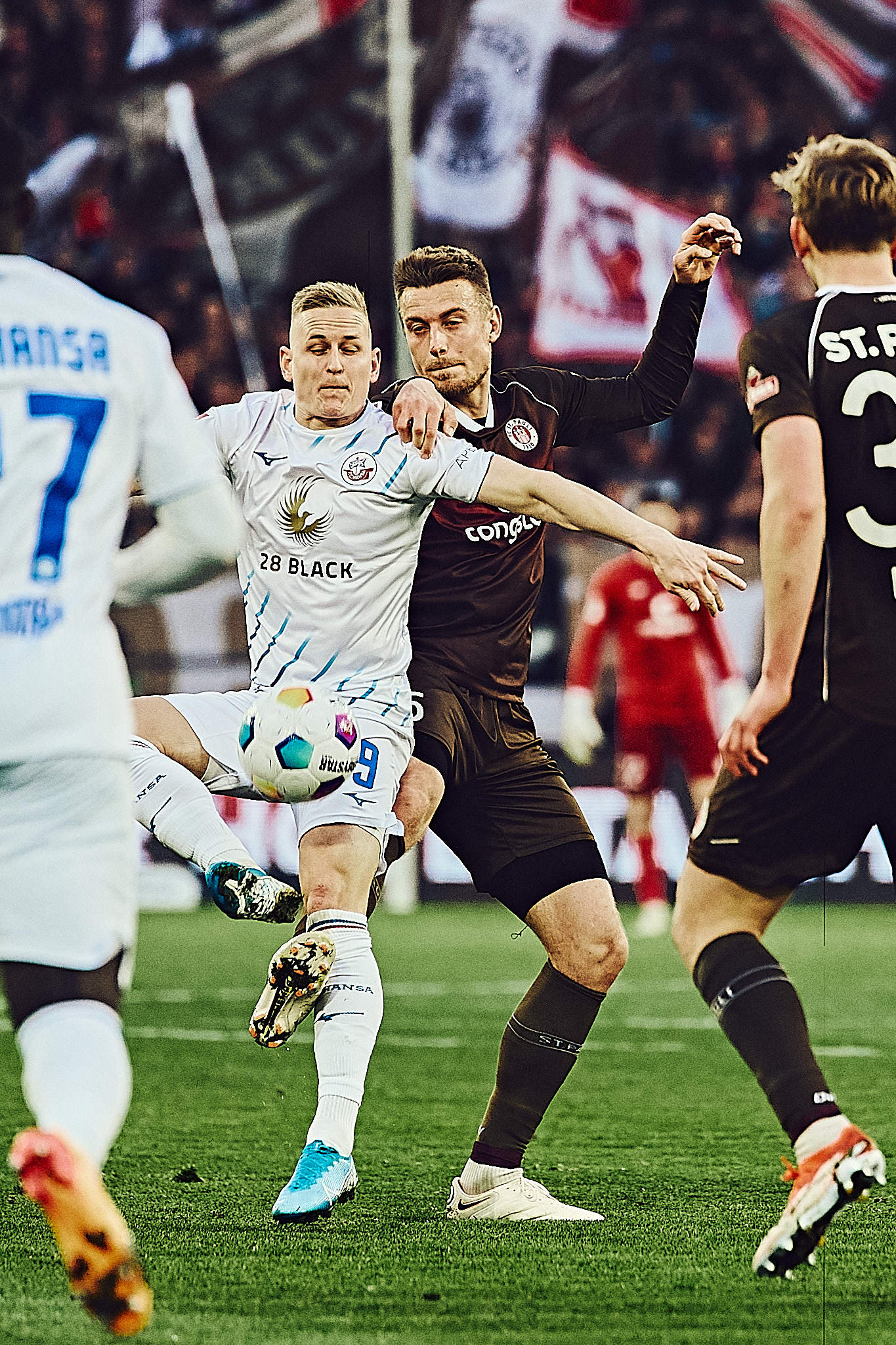 Ansonsten war es eins der unspektakulären Begegnungen gegen die Rostocker. In der ersten Halbzeiten hätten sie auch in Führung gehen können, aber das Team steht nicht umsonst auf einem Abstiegsplatz. Zu harmlos vor dem braun-weißen Tor des erneut starken Vasilj, sonst aber gut aufgestellt, machten die Rostocker dem langsamen FC St. Pauli das Leben schwer. Eigentlich hatte nur Eggestein eine sehr gute Torchance, wurde in letzter Sekunde aber vom Ball getrennt.