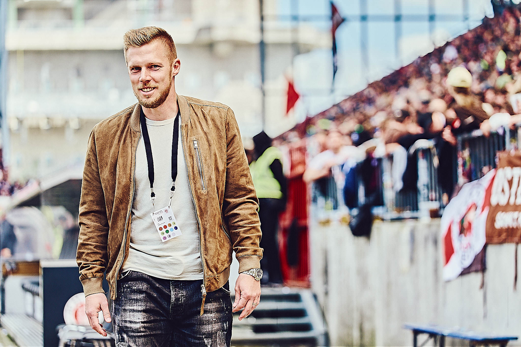 Ab der 78. Minute wurden die Tontechniker aktiv und räumten die Mikrophone weg. Dann kamen Fernsehmenschen mit Kameraequiment und der TV Kameramann von der Mittellinienkamera machte auch schon Feierabend. Ich packte meine Tasche und wollte diese irgendwo in Sicherheit bringen, dabei die Feierlichkeiten mit den Kameras um meine Schultern fotografieren. Da war es aber schon zu spät. Kein Durchkommen mehr. Es ist trotzdem überhaupt nichts passiert – außer dass ich fast umgerannt worden wäre. Eine wunderbare friedliche Atmosphäre lag über dem Platz und viel Ausgelassenheit war spürbar. Fabian Hürzeler wurde zum Sky Mikrophon getragen und die Bierdusche fand vor laufender Kamera statt. Dabei trinkt der Trainer gar kein Bier.