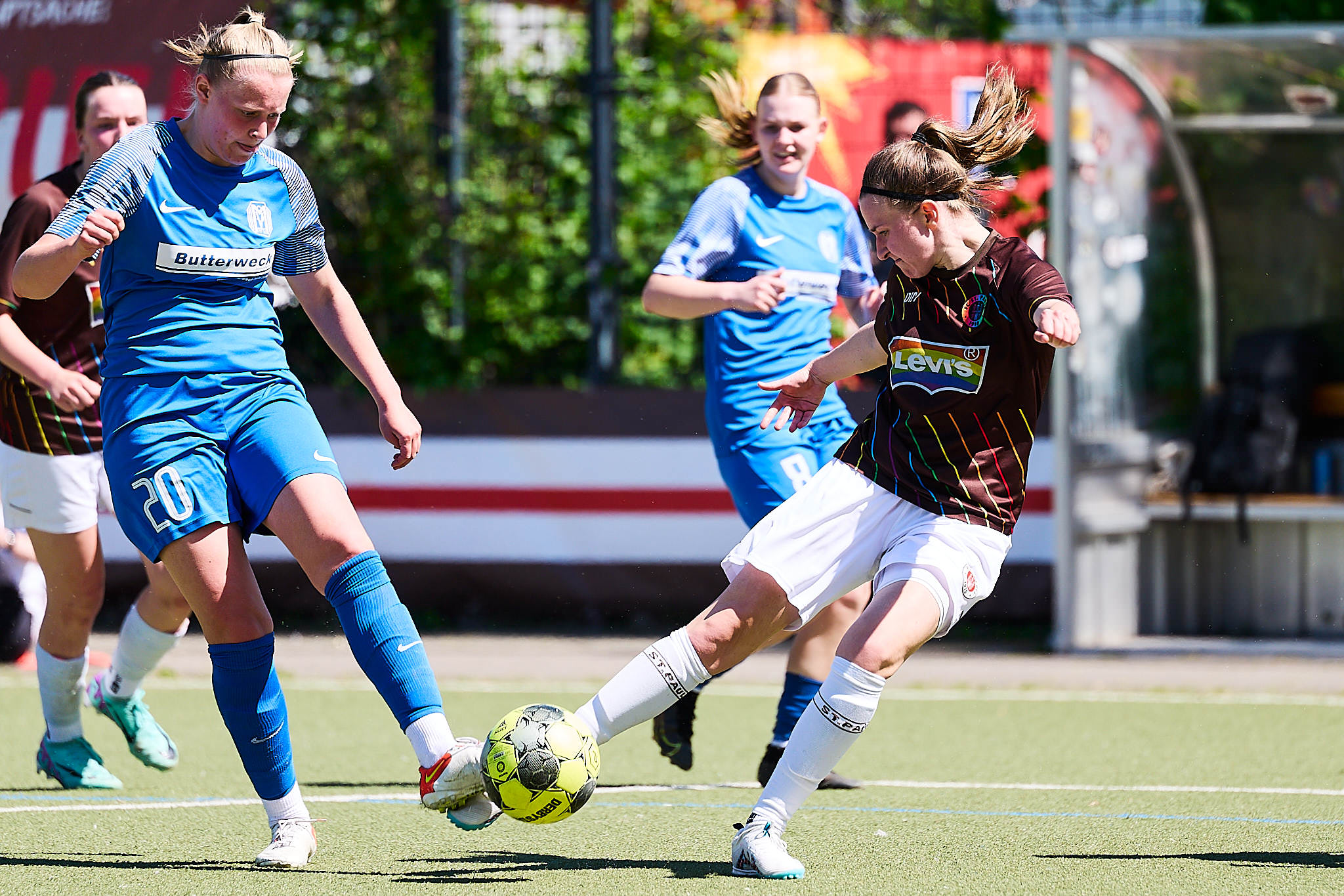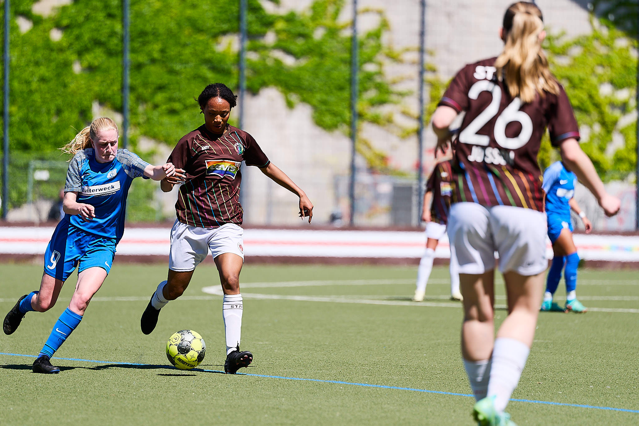 Mit schönem Kombinationsfussball trotz ordentlicher Hitze sichern sich FC St. Pauli 1. Frauen den verdienten Punktgewinn. Dieser machen den Klassenerhalt absolut sicher. Nach dem Sieg von letztem Wochenende machte das braun-weiße Team diesmal endgültig alles klar.