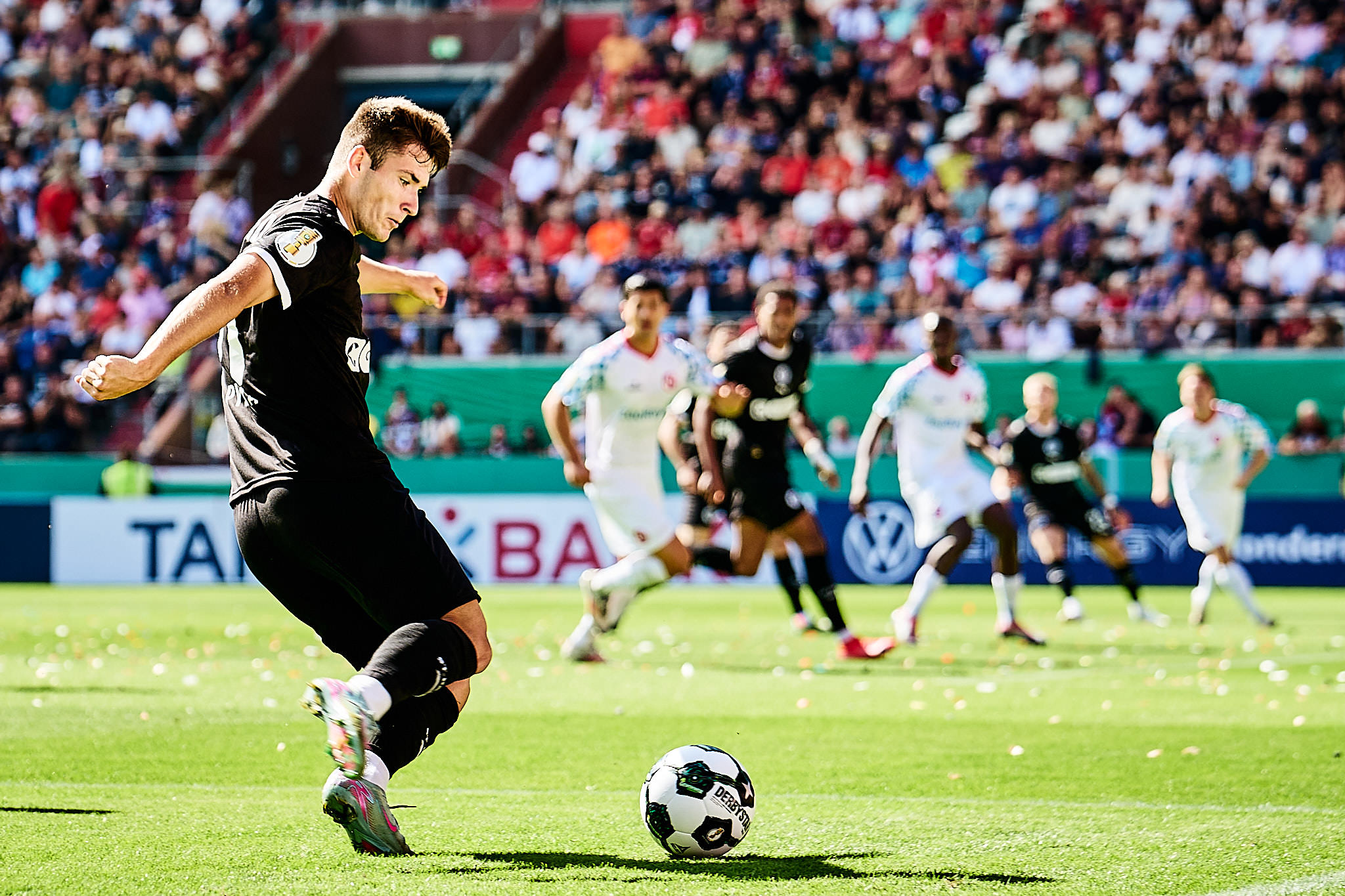 Fünf neue Spieler standen beim FC St. Pauli in der Startformation und alle machten einen guten Eindruck. Vor allem aber Joel Chima Fujita gefiel mir besonders gut. Bin gespannt, wie das alles dann nächsten Samstag gegen Dortmund aussieht. Denn logischerweise hatte das Spiel gegen den Regionalligisten einen anderen Charakter. Mir hat aber gestern sehr gut gefallen, wie sich das braun-weiße Team in den schwarzen Trikots ein ums andere Mal durch die dichten Abwehrreihen kombinierte.