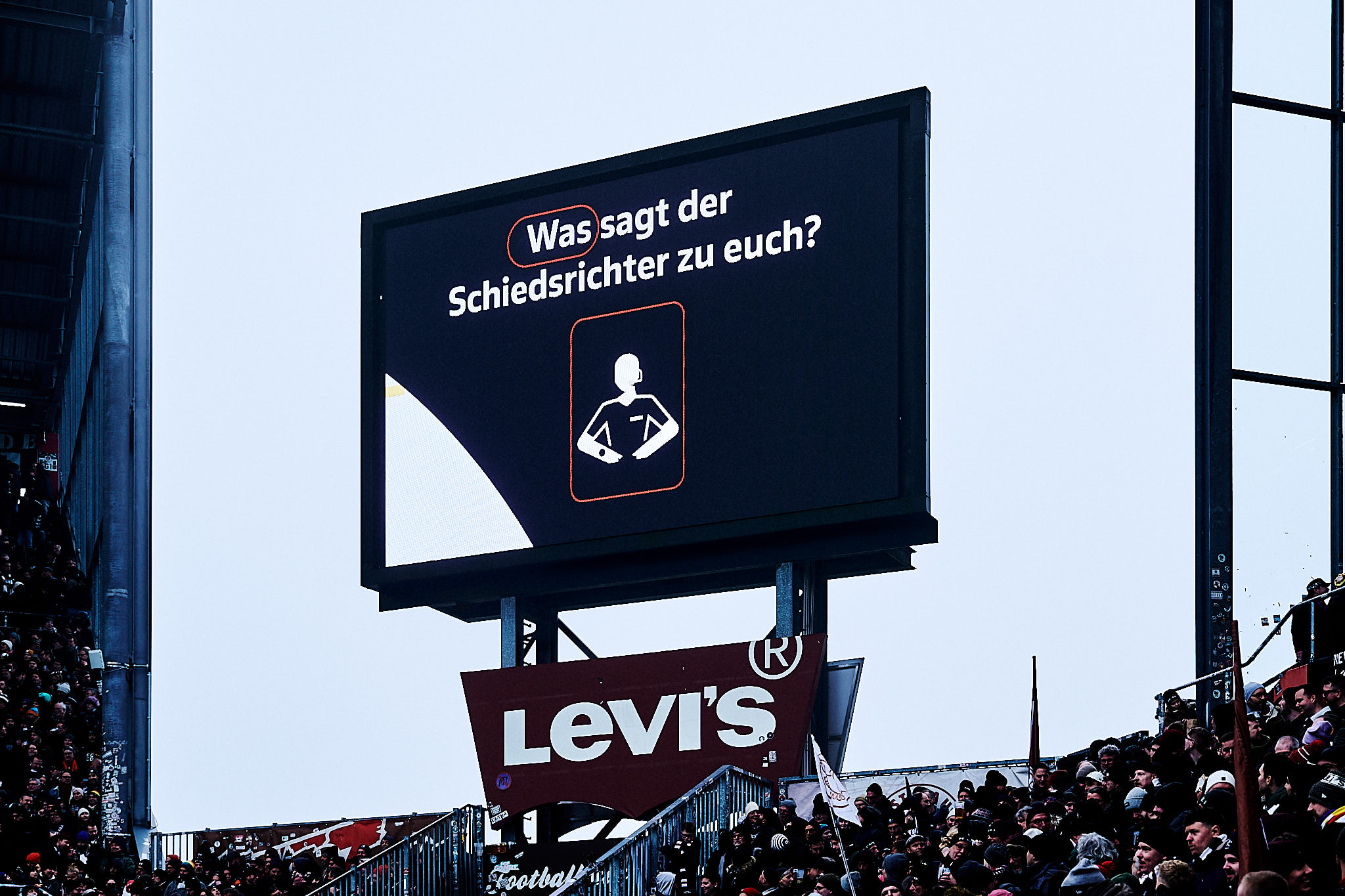 Aber fangen wir vorne an: gespenstische Stille als die beiden Teams den Rasen betreten. Wenige Tage nach dem 80. Gedenktag an die Befreiung der Menschen im Konzentrationslager Auschwitz erinnerte das Millerntor an den Holocaust und der Schreckensherrschaft der Nazis. Die Notwendigkeit an diese Ereignisse zu erinnern, wurde erst diese Woche wieder deutlich.