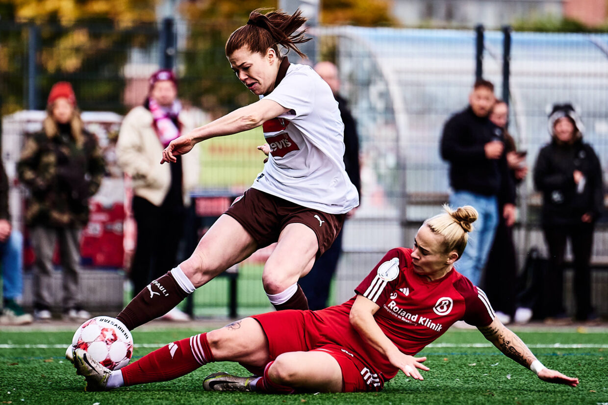 FC St. Pauli 1. Frauen kamen stärker aus der Pause und nahmen den Kampf an. So zwangen sie die Torfrau aus Bremen zu einem ihrer seltenen Fehler, den Josefin Lutz in der 50. eiskalt zum Ausgleich nutzte. Wenn der Schiedsrichterassistent genaueres zum Abseits wüsste, hätten auch noch weitere Treffer fallen können. Leider hob er bei zwei weiteren Treffern der Braun-Weiß die Fahne. Gleichzeitig sah er einen Schlag ins Gesicht direkt vor seinen Augen nicht.