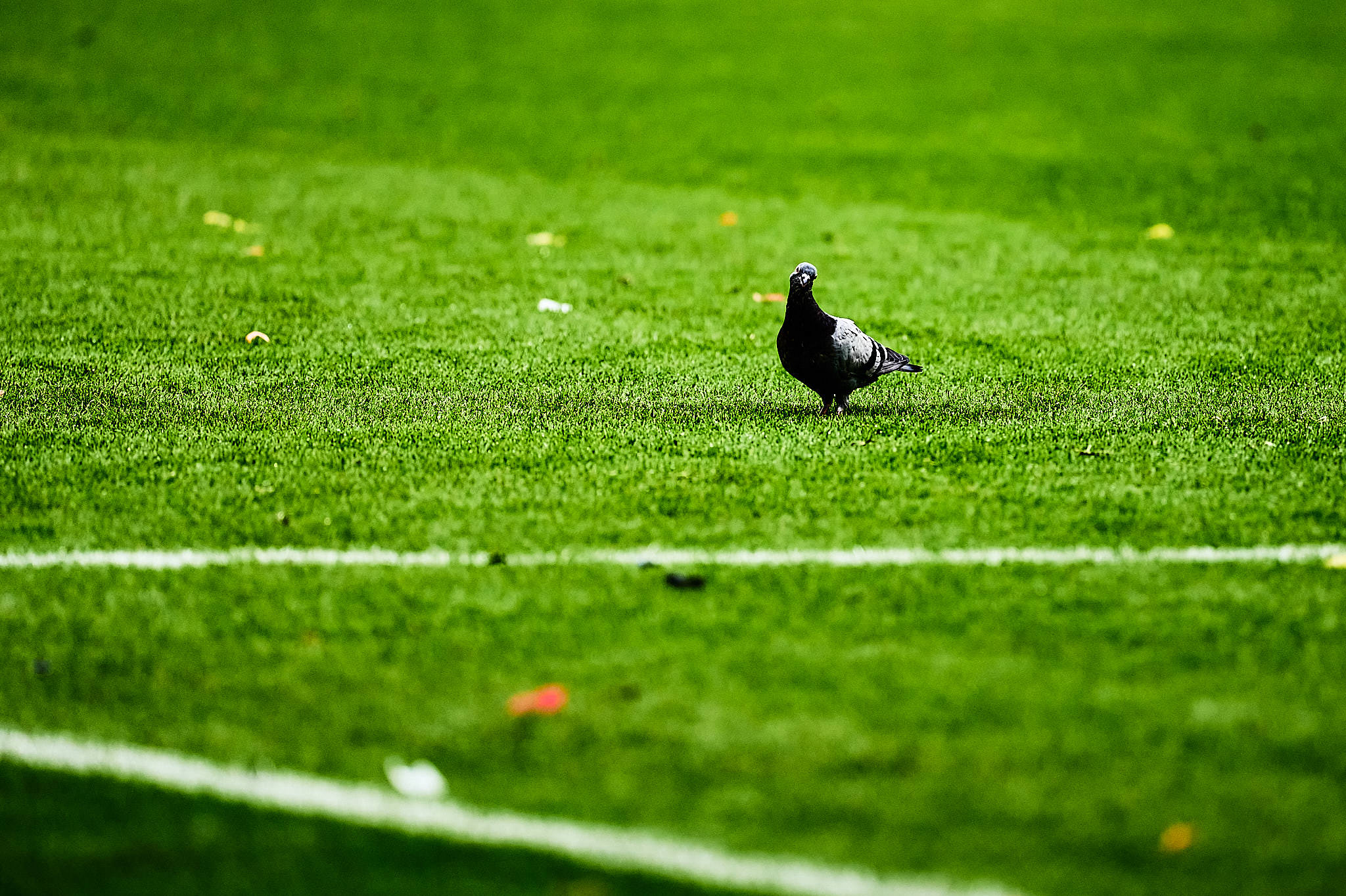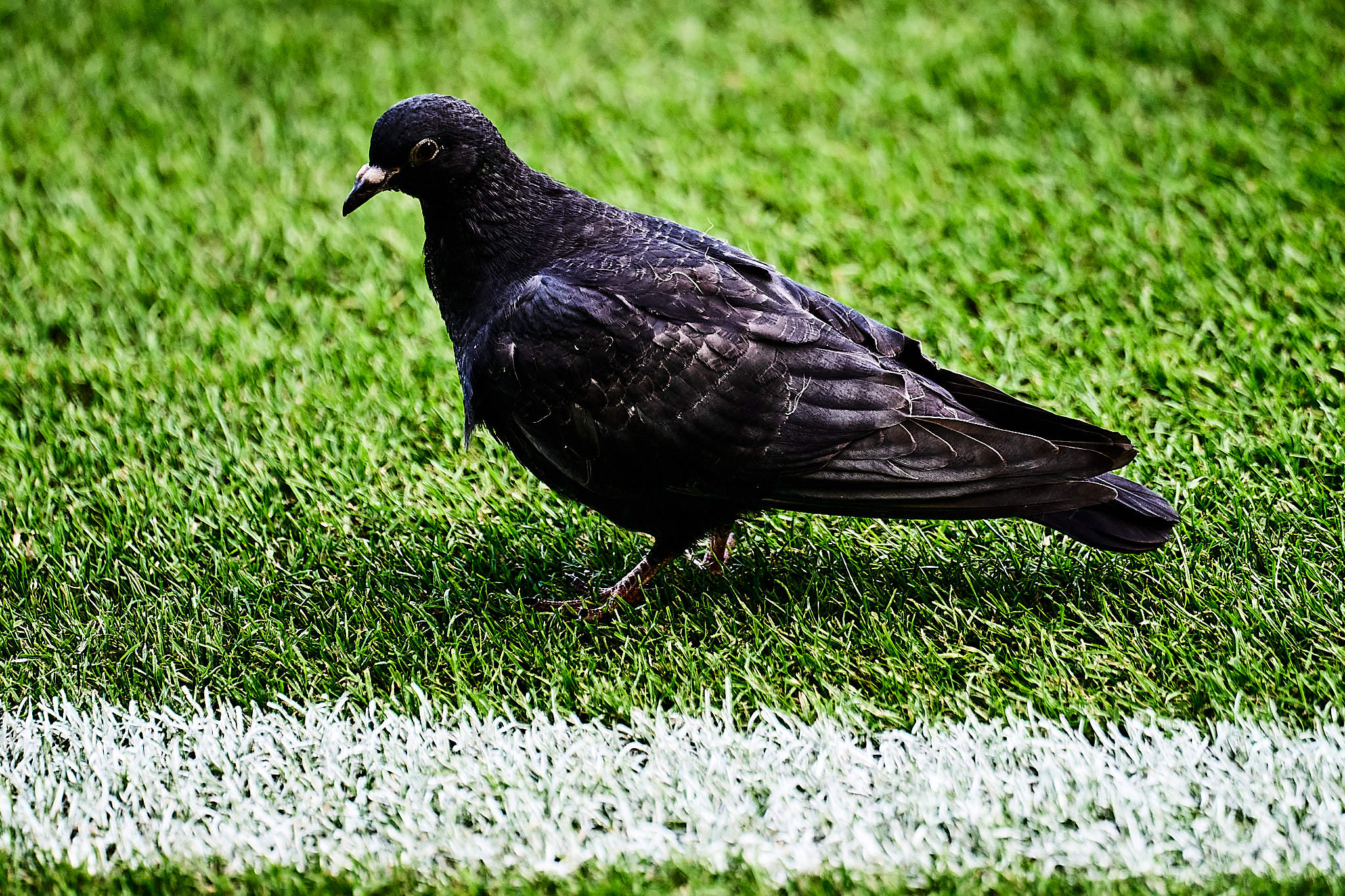 Stichwort Tauben, in Halbzeit 2 tummelten sich bis zu 4 Vögel, meistens ungestört, vor Nikola rum und inspizierten den Hybridrasen.