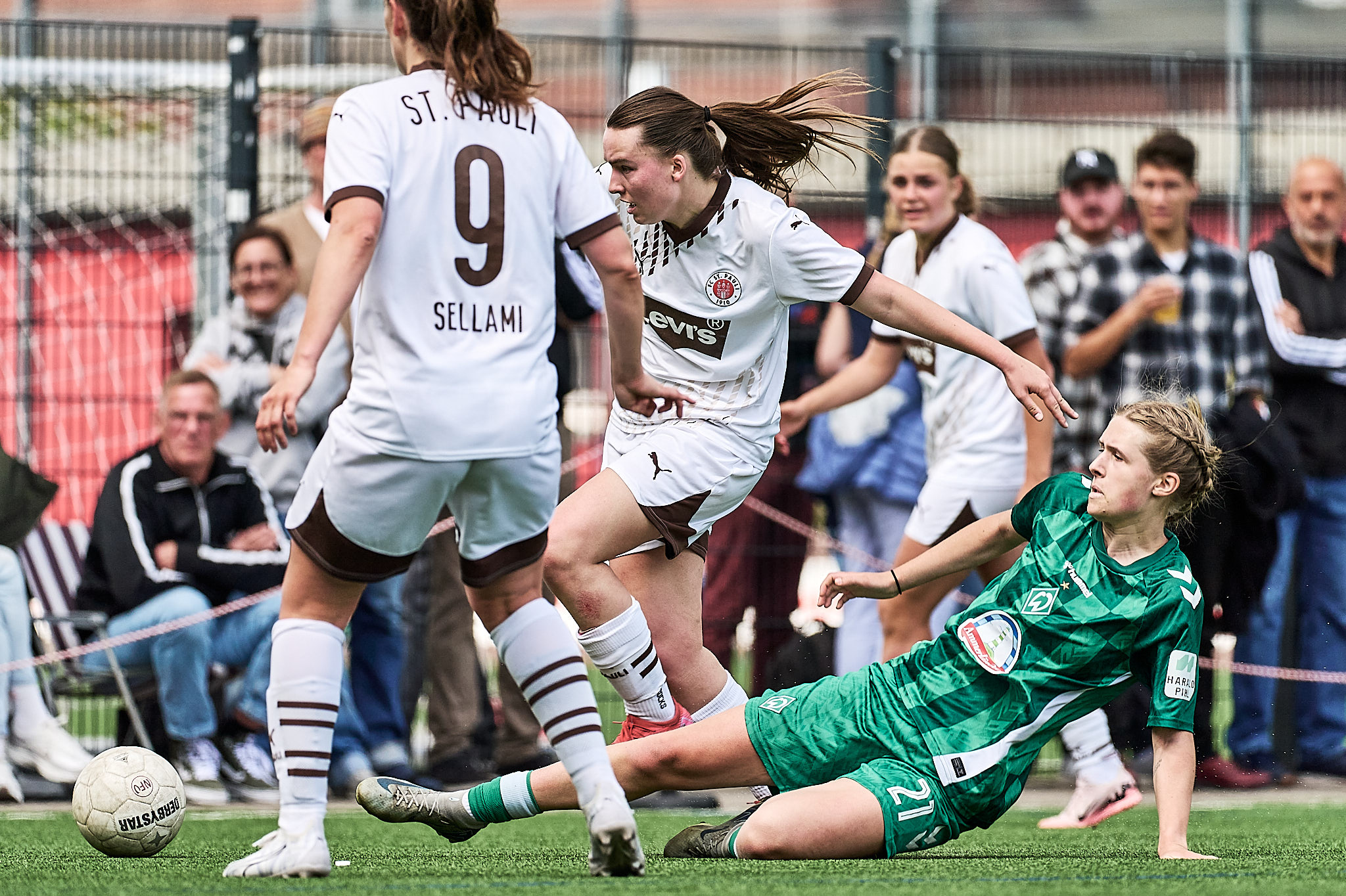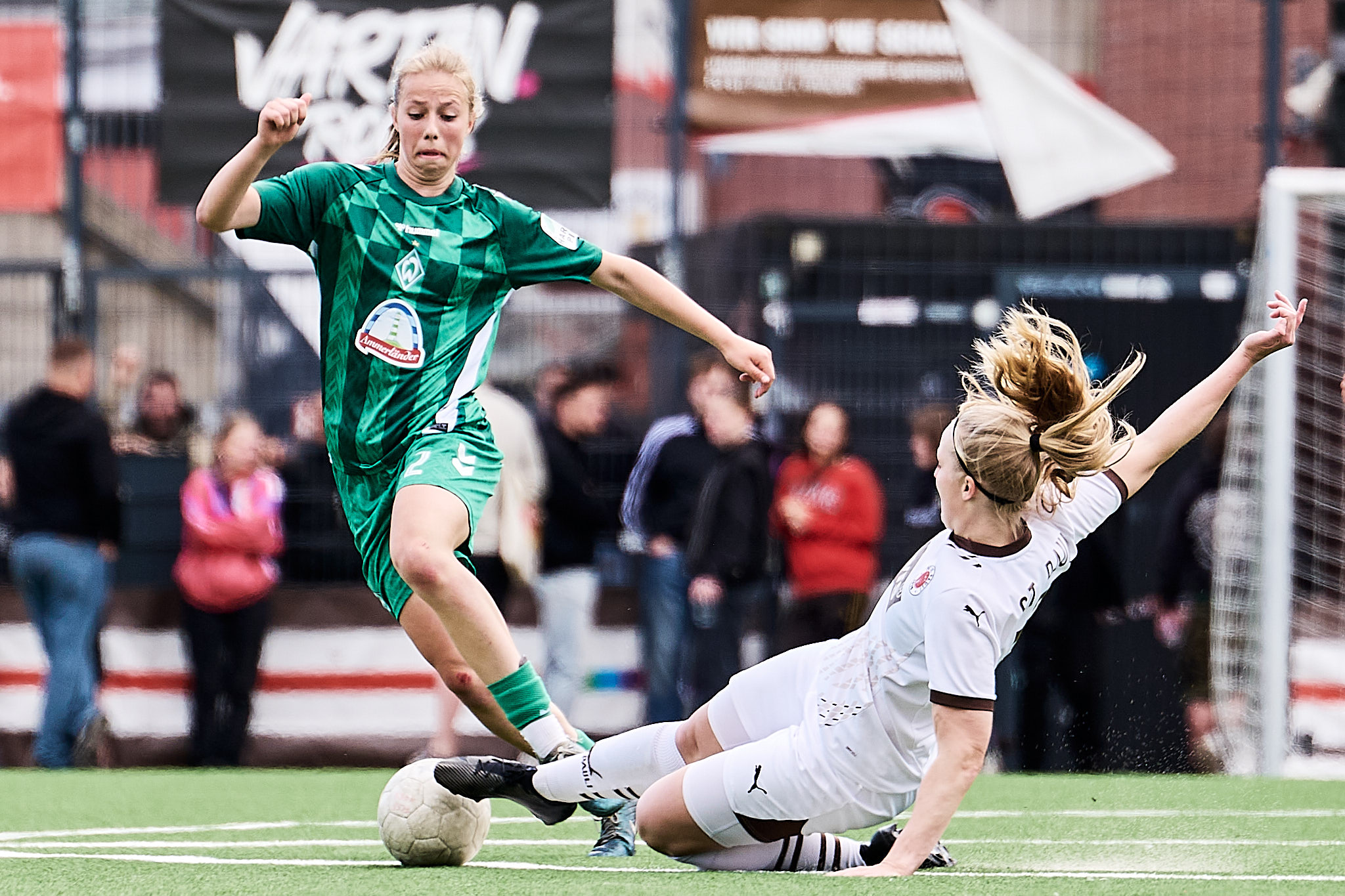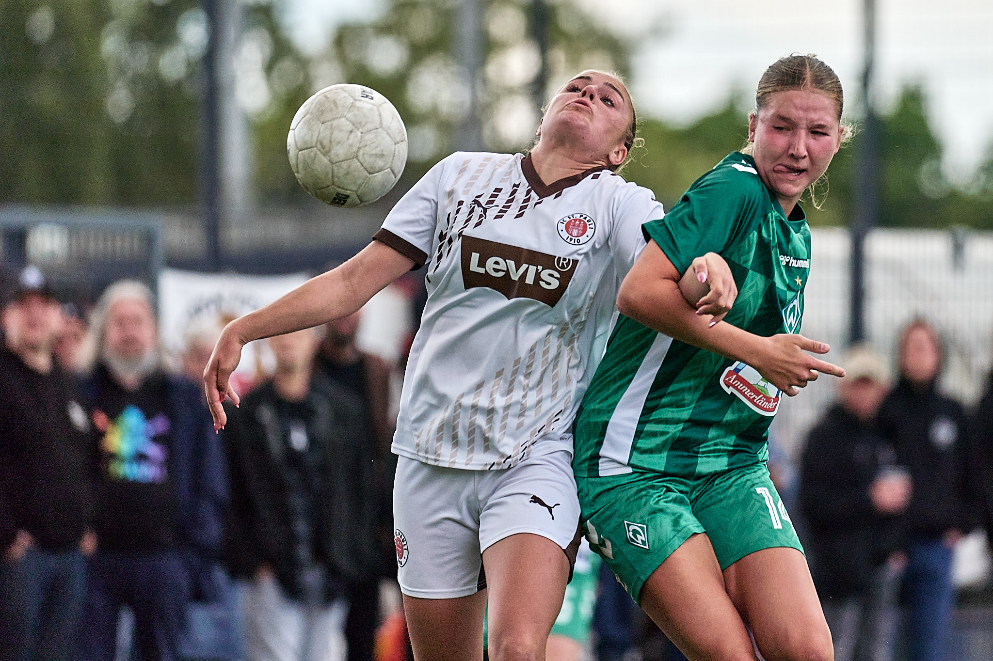 Dieses Spiel gewinnen die FC St. Pauli 1. Frauen gegen die 2. Frauen vom SV Werder Bremen mit 2:0 völlig verdient. Dabei fielen die Tore früh und spät. Neele Nordhausen traf in der dritten Minute und Josefin Lutz in der 86. Dazwischen hatten beide Teams unter den Augen von mehreren hundert Fans gute Chance auf weitere Treffer.