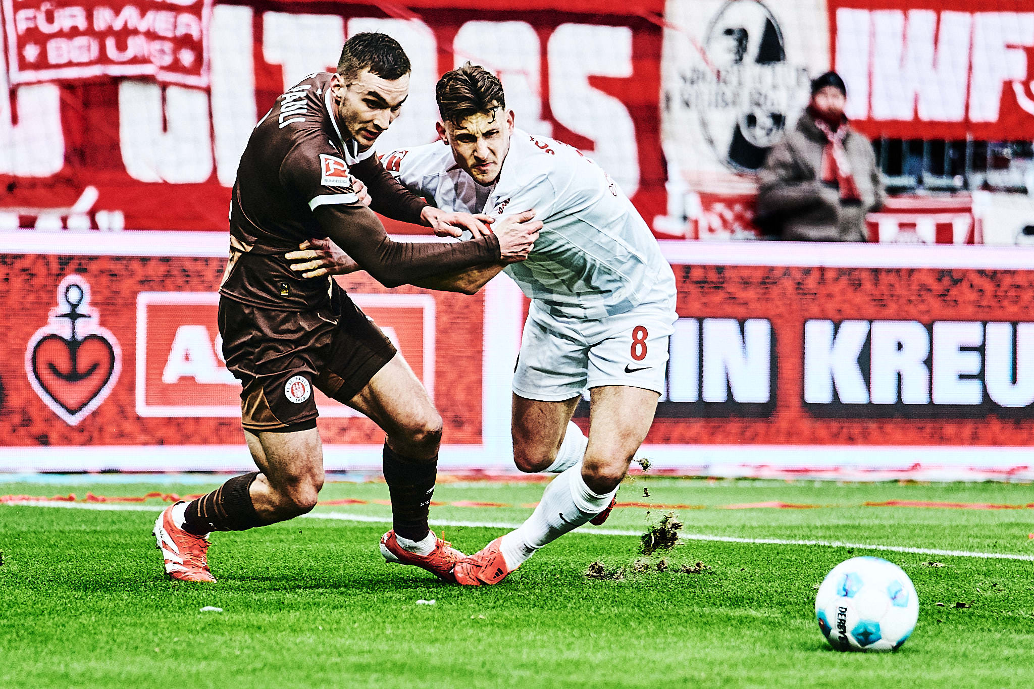 Erstligareif war beim FC St. Pauli einzig Nikola Vasilj. Der Torwart hielt, was es zu halten gab. Auch wenn der Strafstoß von Grifo schlecht geschossen war, musst du den trotzdem erstmal halten. James Sands hat mir auch sehr gut heute gefallen. Allerdings verletzte er sich mit der letzten Aktion offensichtlich schwer. Irgendwie hat er wohl sein Bein überstreckt und ist dann im Rasen hängen geblieben. So sieht es zumindest auf meinen Fotos aus. Ich wünsche ihm baldige Genesung.