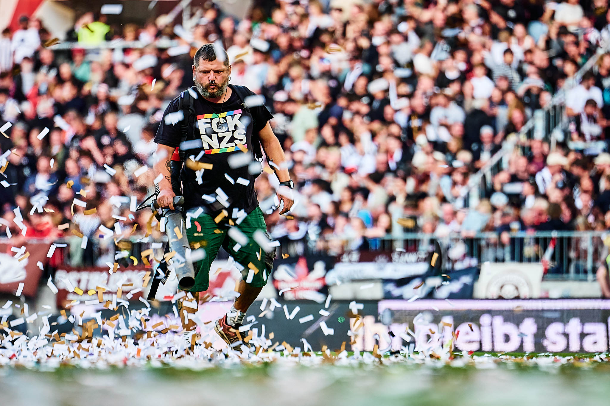Zuvor ist der FC St. Pauli nach dem Führungstreffer von Serhou Guirassy durch den BVB und dem verschossenen Elfmeter von ebendiesem durch die tolle Parade des noch tolleren Nikola Vasilj nach der Halbzeit das erste Mal zurückgekommen. Neuzugang Andreas Hountondji brachte das Millerntor das erste Mal zum Beben und mein Equipment zum Kleben. Direkt nach der Halbzeit sind Tore ungünstig, weil dann die Bierbecher noch voll sind.
