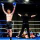 Gleich die ersten beiden der 10 Kämpfe des Abends endeten mit KO. Und ich konnte glücklich twittern, dass ich jeweils die entscheidenden Schläge fotografisch festgehalten hatte. Solche Kampfsportabende zu fotografieren ist immer sehr verschlussverschleissfreudig, denn jeder Schlag könnte der letzte des Kampfes sein. Gleichzeitig möchte man aber natürlich auch spektakuläre Bilder. Bedeutet, dass ich lieber zu oft als zu wenig auslöse, aber trotzdem nicht fortwährend, denn sonst habe ich bei der Bilderflut gar keine Chance mehr durchzusteigen. Letztlich habe ich am Samstag in den rund 4 Stunden der Veranstaltung etwas über 3000 Auslösungen gemacht. Anstrengend ist das Fotografieren übrigens auch, denn Du solltest unter dem untersten Ringseil durchfotografieren. Das bedeutet eine äußerst verdrehte Körperhaltung – und das stundenlang. Ich fühle mich am Tag nach einer Boxveranstaltung immer total gerädert. Letztlich werde ich mit einem besonders hautnahem Erlebnis belohnt.