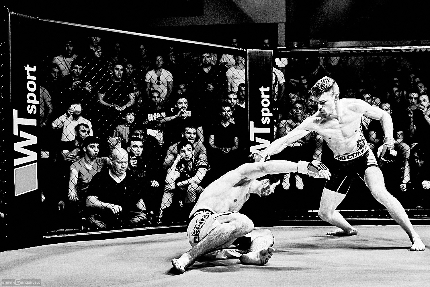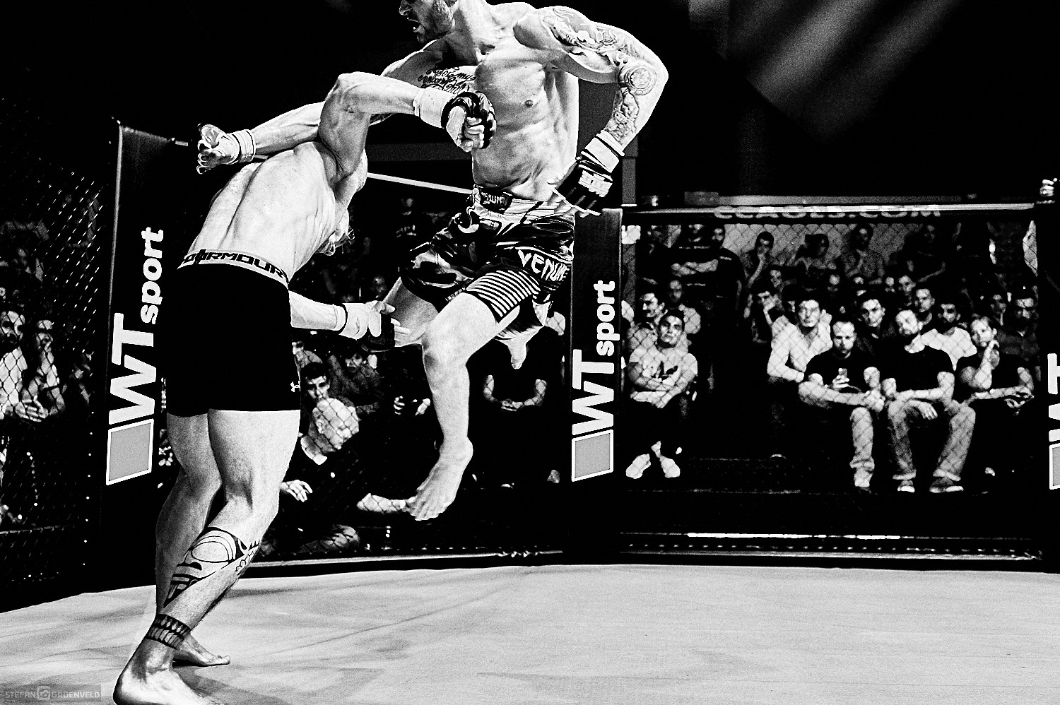 „MMA ist die Spitze des Kampfsports, weil sie Elemente aller anderen Eins-gegen-Eins Sportarten miteinander verbindet“, hatte ich vorher gelesen. Jetzt habe ich es gesehen und verstanden. Es fiel mir manchmal schwer mich auf meinen Job als Dokumentar der Veranstaltung zu konzentrieren. Hammer, was die Jungs im Cage für ein Feuerwerk abfeuerten.