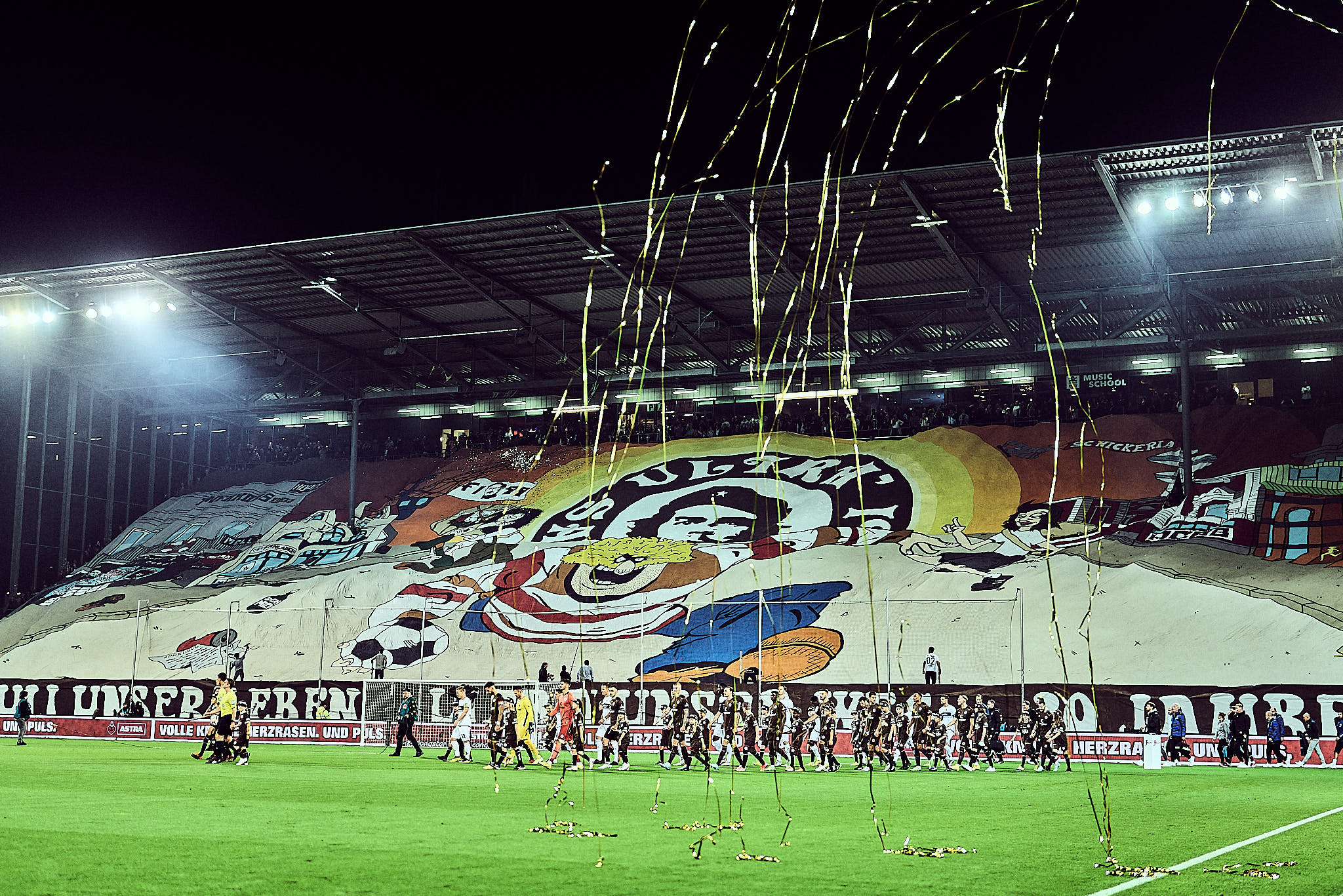 Falls du ein größeres Bild von der USP Choreo haben möchtest, habe ich noch eine kleine Überraschung. Von der Blockfahne habe ich ein Panorama aus mehreren Fotos gemacht und das zu einem Bild zusammen gesetzt. Dadurch kannst du die feinen Details super sehen. Runterladen kannst du dir das hier. Viel Spaß damit.