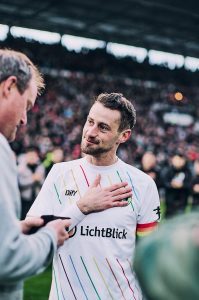 Zum Gelingen trugen natürlich auch die teilweise von weither angereisten Spieler:innen und ein gut gelauntes Publikum bei. Über 10000 Menschen waren ans Millerntor gekommen, um Schnecke ein letztes Mal zuzujubeln. Da stört es dann auch nicht, dass der Nachwuchs öfter beim Abschiedsspiel traf als der Herr Papa (in seiner kompletten Karriere).