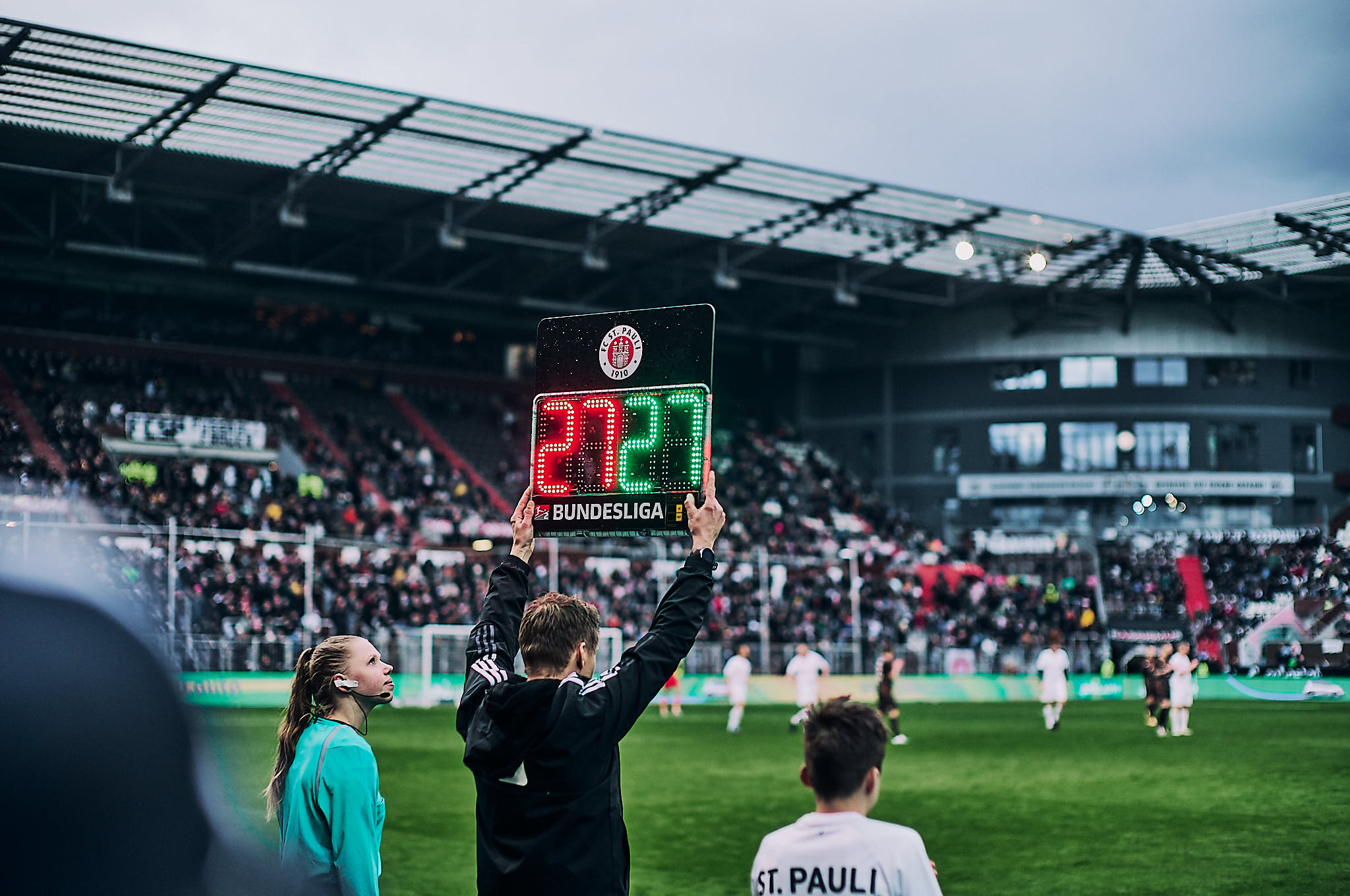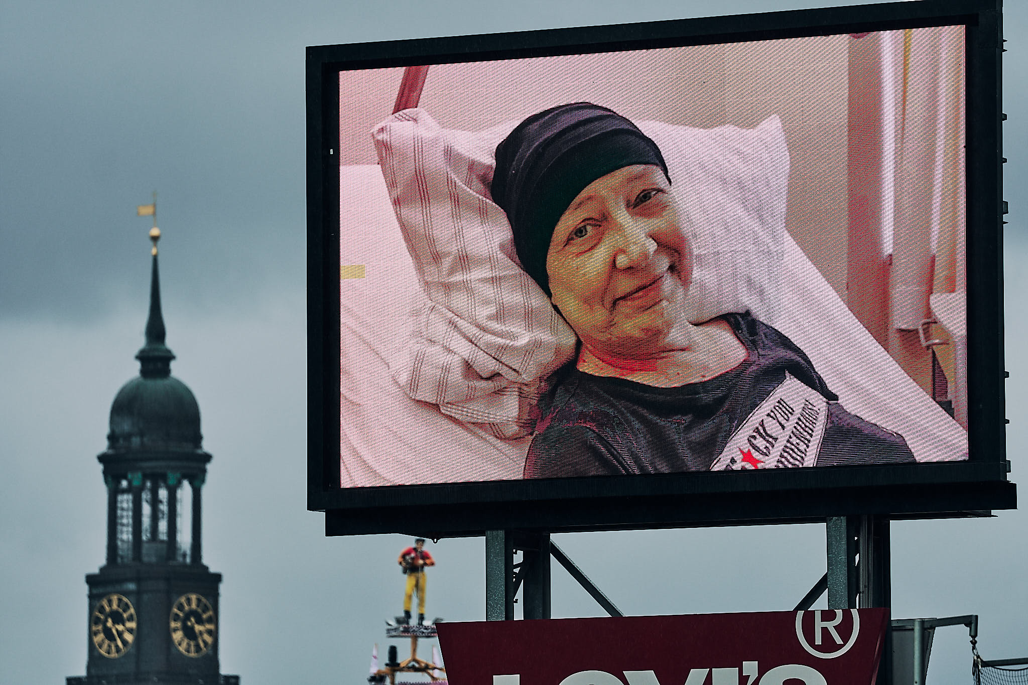 Eine besondere Zuschauerin hat es leider nicht zum Spiel geschafft. Antje hat rund zwei Jahrzehnte das Geschehen am Millerntor fotografisch festgehalten. Auf ihrem Fotolaibchen prangte die Rückennummer 27. Leider hat sie letzte Woche ihren Kampf gegen den Krebs verloren. Ich habe ihr viel zu verdanken und werde sie vermissen. Es war ein sehr emotionaler Moment, sie vor dem Spiel über die Videoleinwand mit einem Gruß flimmern zu sehen. Da blieben dann auch die Spieler beim Aufwärmen mal kurz stehen.