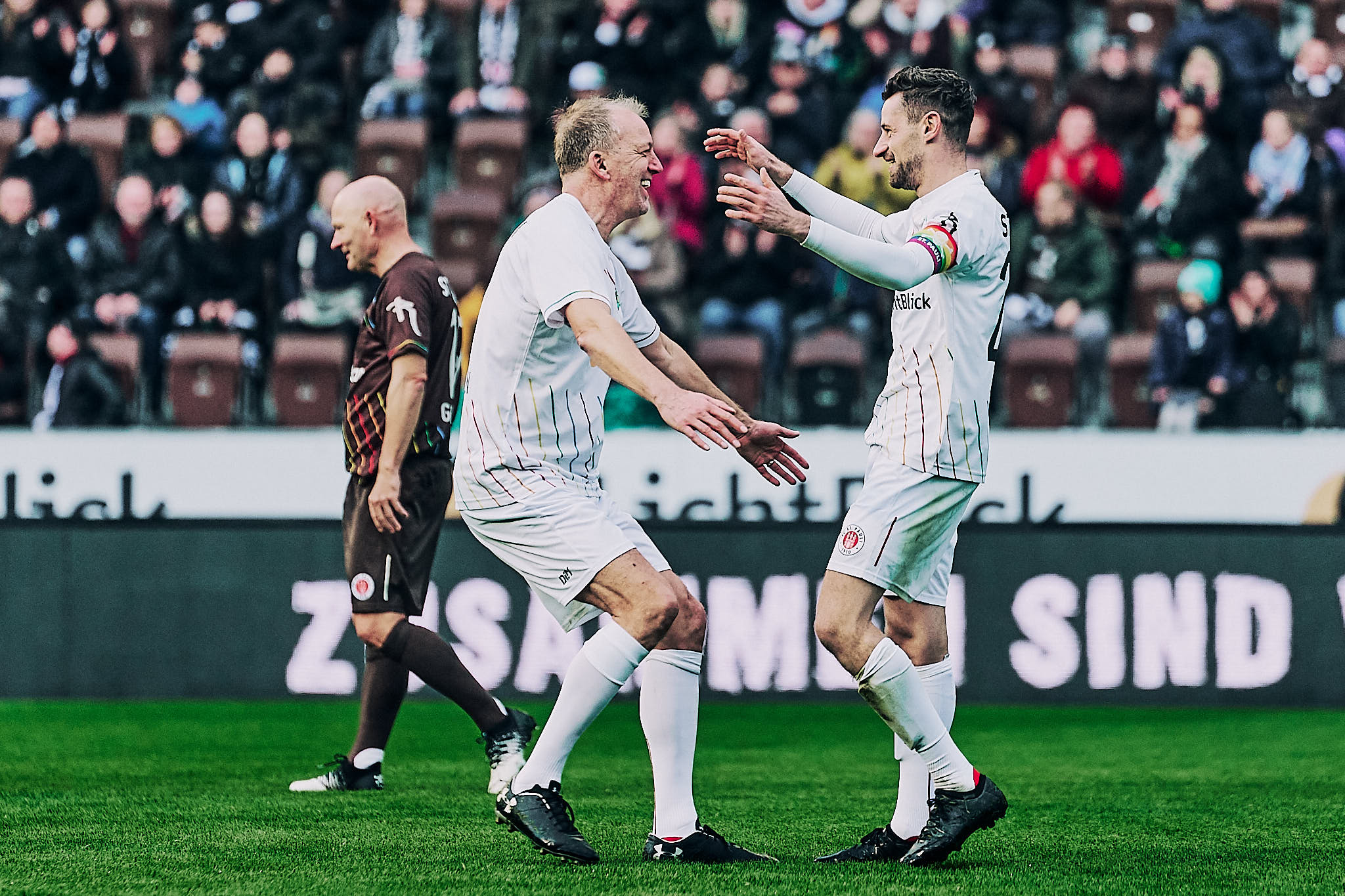 Zum Gelingen trugen natürlich auch die teilweise von weither angereisten Spieler:innen und ein gut gelauntes Publikum bei. Über 10000 Menschen waren ans Millerntor gekommen, um Schnecke ein letztes Mal zuzujubeln. Da stört es dann auch nicht, dass der Nachwuchs öfter beim Abschiedsspiel traf als der Herr Papa (in seiner kompletten Karriere).