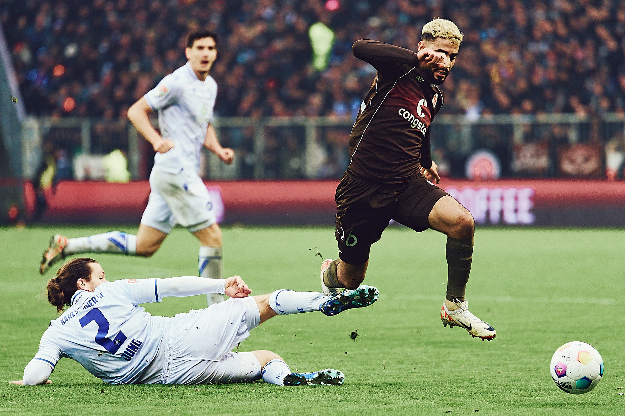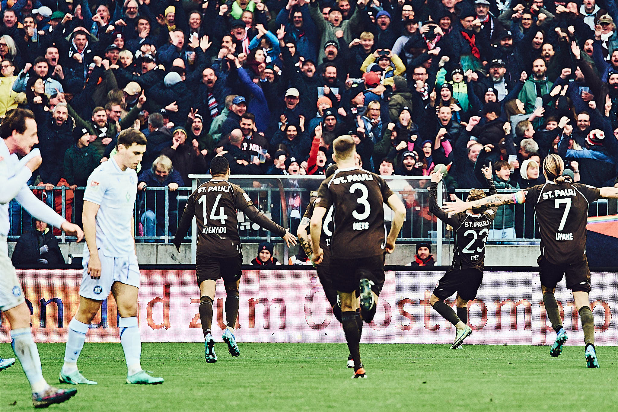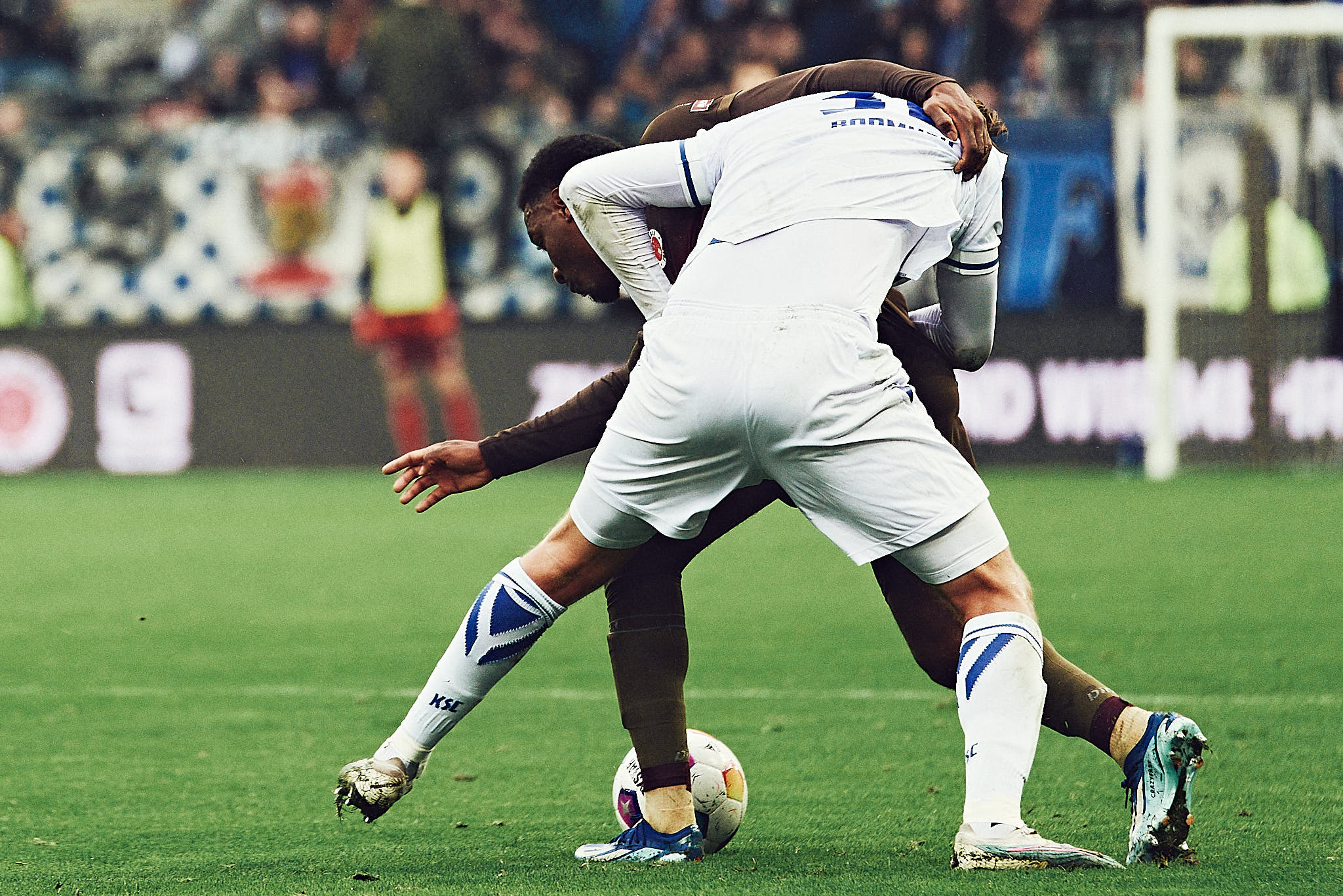 Nur nicht aufgeben war am 11. Spieltag der 2. Liga in der Saison 2023/24 das Gebot der Stunde. Der FC St. Pauli dreht nämlich erst in der Nachspielzeit das Spiel gegen den Karlsruher SC zu einem erneutem Erfolg. Vorher biss sich das braun weiße Team am guten und engen Stellungsspiel der Badener die Zähne aus und lag durch eine der wenigen guten Aktionen der Gegner 0:1 zurück. Das in letzter Zeit gewohnt gute und schnelle Spiel des FC St. Paulis wirkte erst ab der 80. Minute, reichte aber für einen dreifachen Punktgewinn.