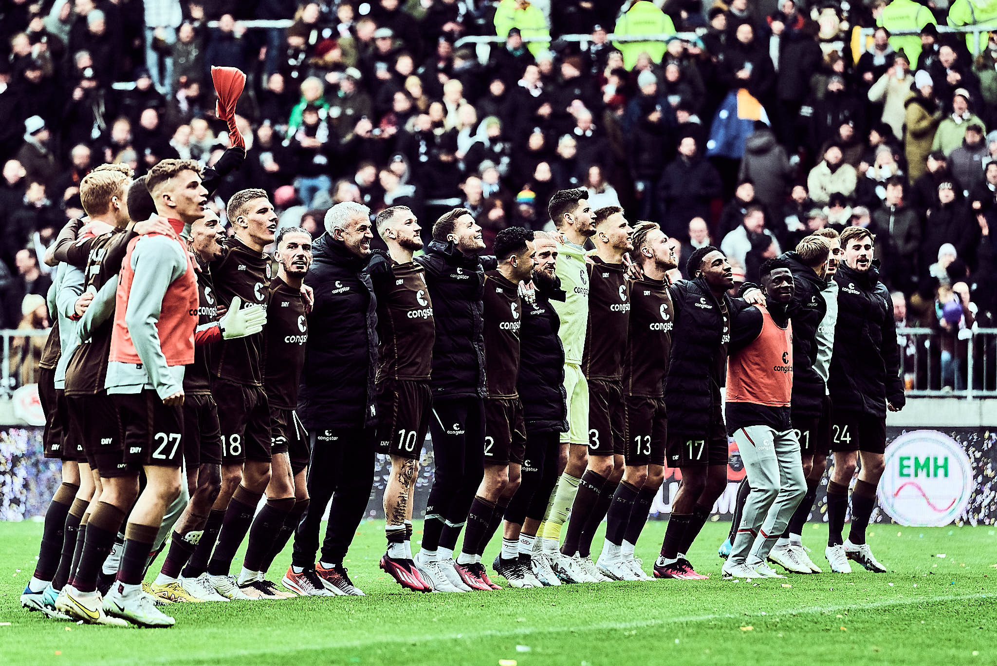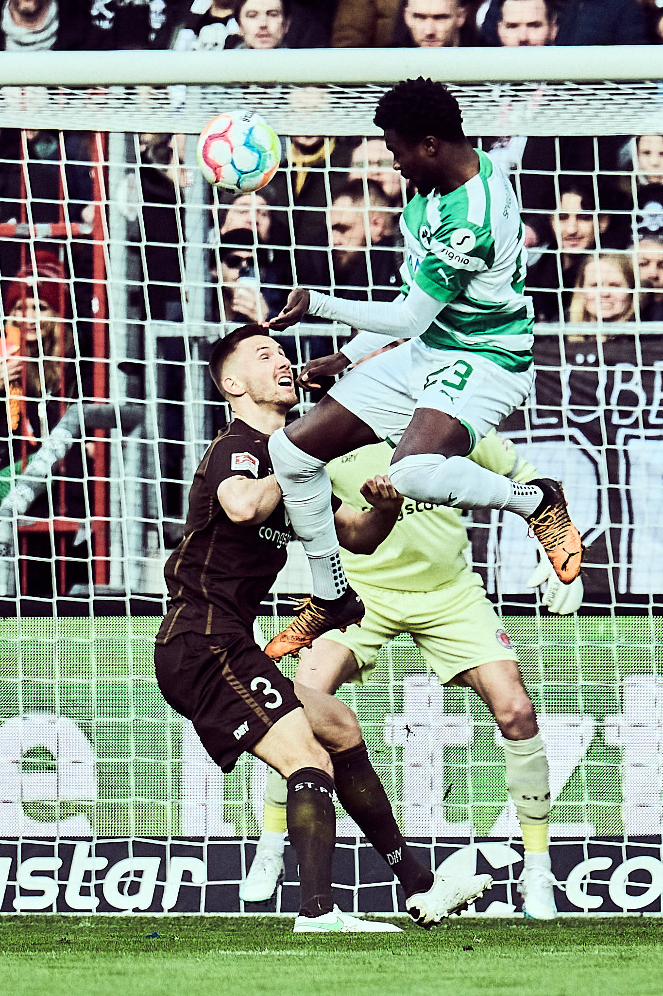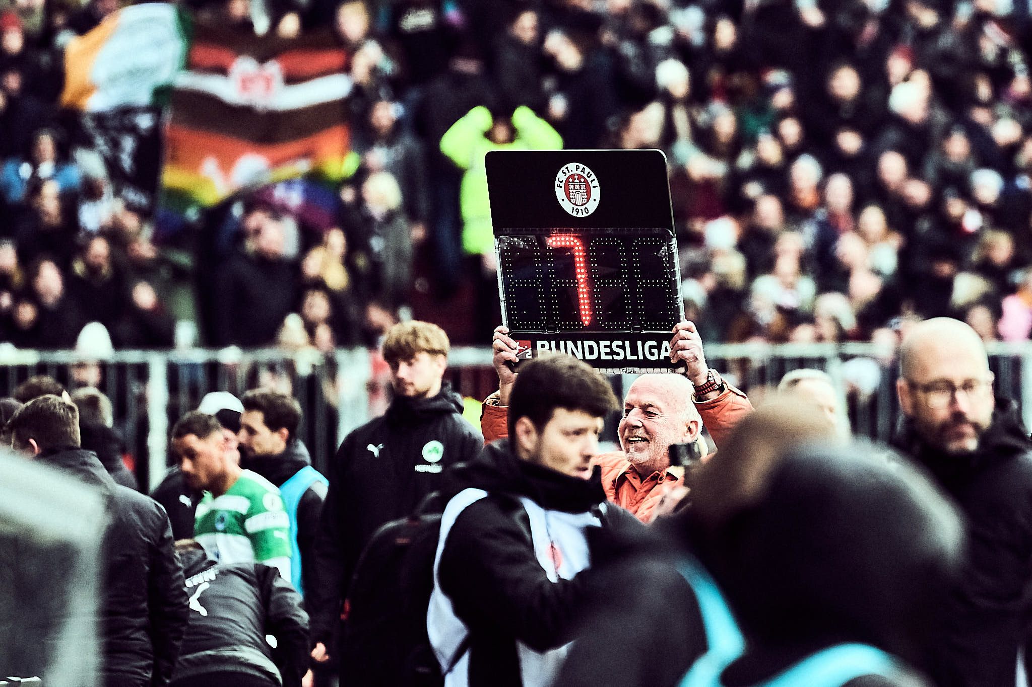 Die nächste spannende Szene war dann der Platzverweis vom Vorlagengeber der Fürther und Ex-HSVer Gideon Jung. Eine leider immer noch wichtige Pausenchoreo folgte. Der FC St. Pauli kam fokussierter aus der Halbzeit. Volley wuchtete Oladapo Afolayan den Ball in der 55. Minute zum 2:1 über die Linie. Danach war wildes Verteidigen angesagt. Die Defensive vom FC St. Pauli stand allerdings nun und wurde gegen Ende des Spiels durch Einwechslungen noch verstärkt. Der Gewinn des siebten Spiels in Folge konnte so über die Zeit gebracht werden. Glückwunsch zum Vereinsrekord!