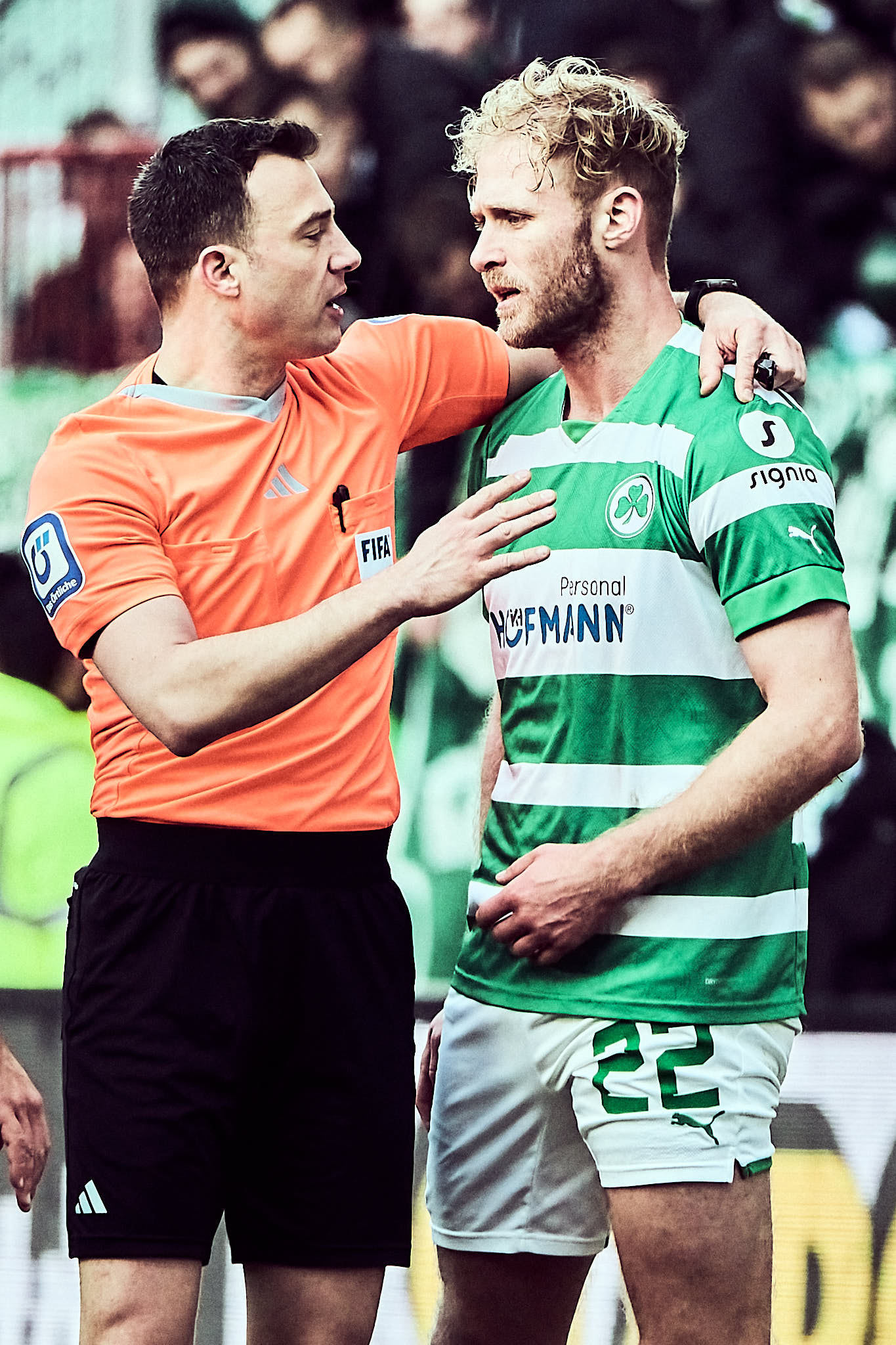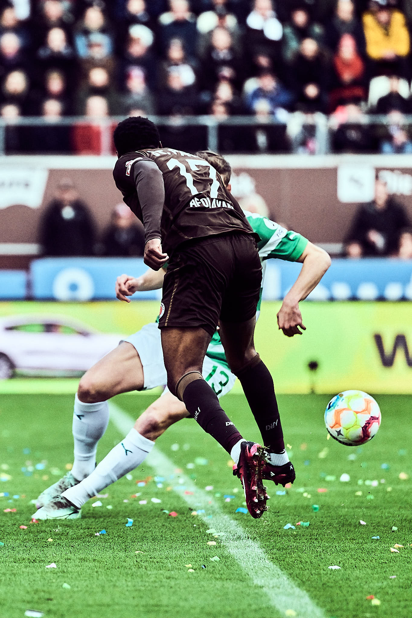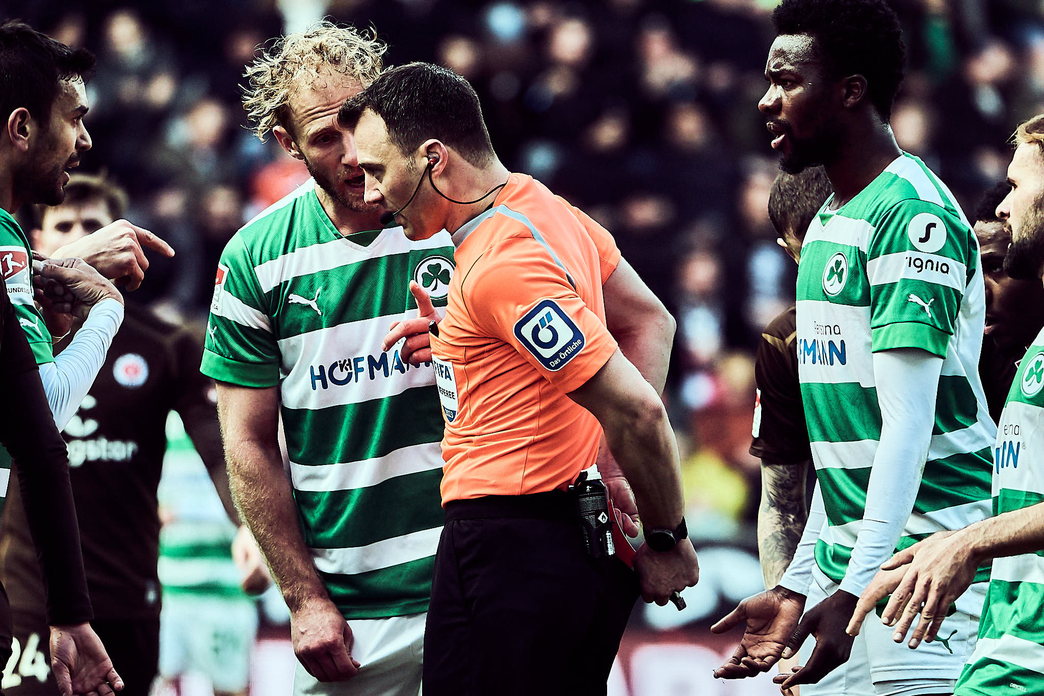 Die nächste spannende Szene war dann der Platzverweis vom Vorlagengeber der Fürther und Ex-HSVer Gideon Jung. Eine leider immer noch wichtige Pausenchoreo folgte. Der FC St. Pauli kam fokussierter aus der Halbzeit. Volley wuchtete Oladapo Afolayan den Ball in der 55. Minute zum 2:1 über die Linie. Danach war wildes Verteidigen angesagt. Die Defensive vom FC St. Pauli stand allerdings nun und wurde gegen Ende des Spiels durch Einwechslungen noch verstärkt. Der Gewinn des siebten Spiels in Folge konnte so über die Zeit gebracht werden. Glückwunsch zum Vereinsrekord!
