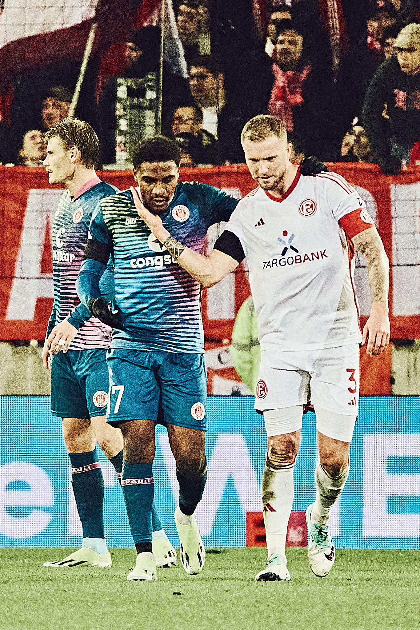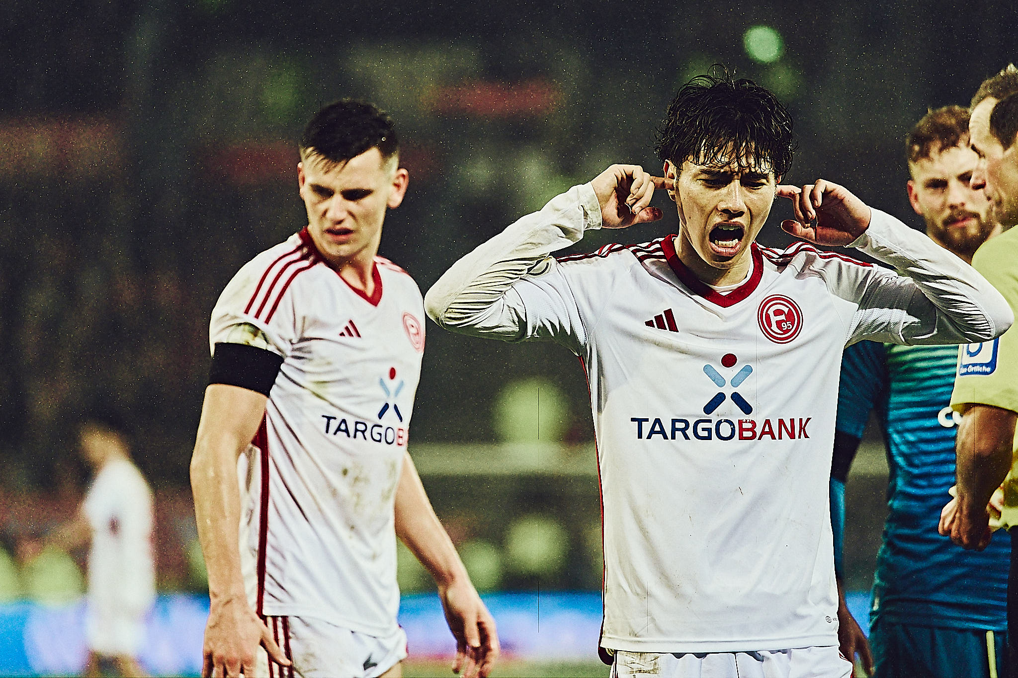 Noch ein paar Worte zur Unsportlichkeit des Abends durch den Düsseldorfer Torwarttrainer Christoph Semmler. Beim Elfmeterschießen ging er hinter das Tor und sagte Kastenmeier die Ecken an. Das wurde zuerst von den Fans und dann auch vom Schiri Stegemann entdeckt, der den Trainer weg schickte. Warum er keine Karte zeigte, ist mir unklar – vielleicht ist ein:e Leser:in regelfest und kann näheres sagen…