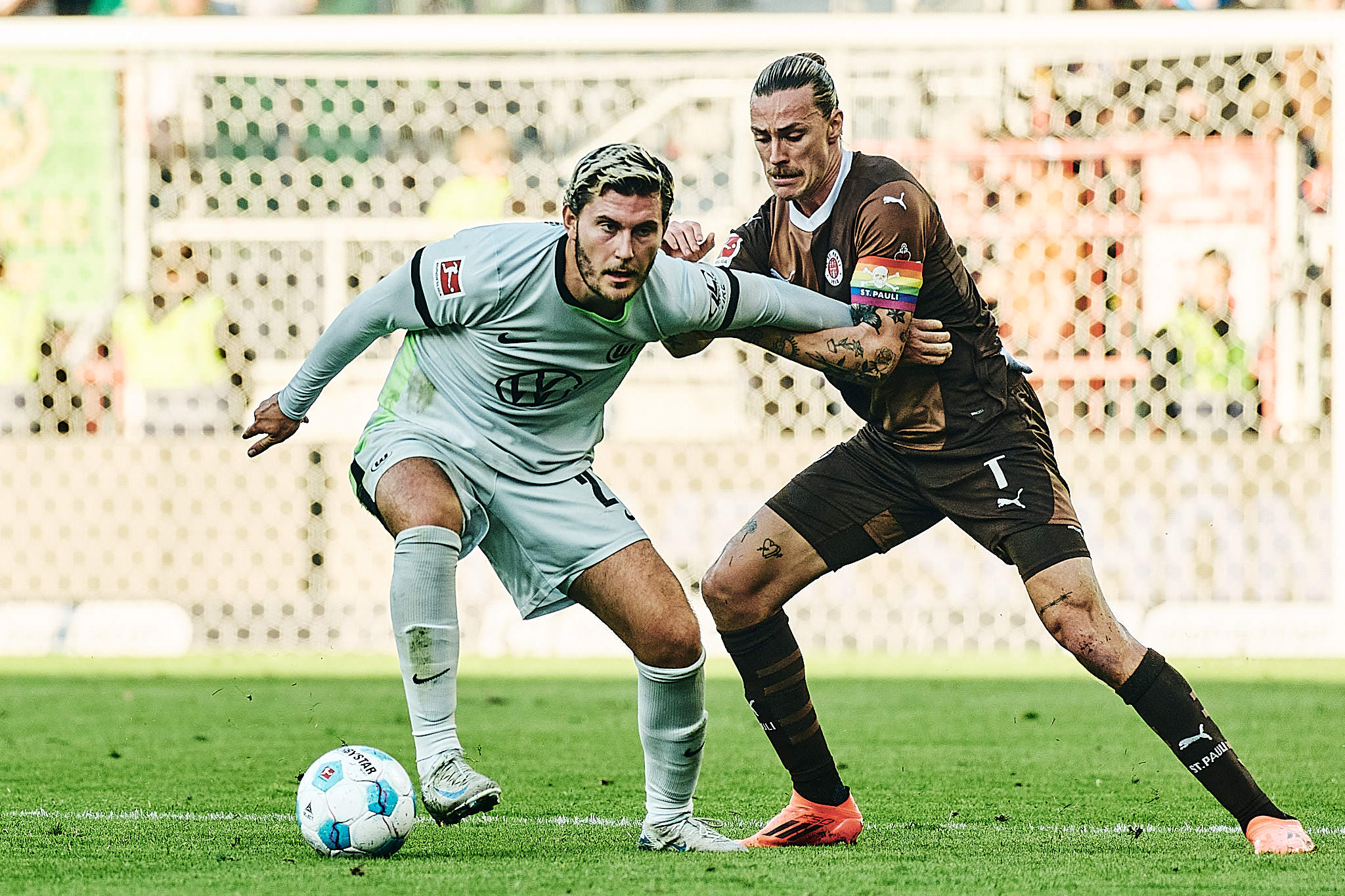 Das Bundesligaspiel am 8. Spieltag zwischen FC St. Pauli und VfL Wolfsburg war dank vieler Regenbogenfarben zumindest auf den Rängen ein buntes Spiel. Die Erinnerung an eine vielfältige Gesellschaft haben wir dem Wolfsburger Spieler Kevin Behrens zu verdanken, der seine äußerst unsympathische Meinung geäußert hat. Kann man machen, aber dann muss man sich auch nicht wundern, wenn Leute außerhalb des eigenen gedanklichen Neandertals ihn im aktuellen Jahrtausend ankommen lassen.
