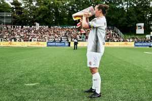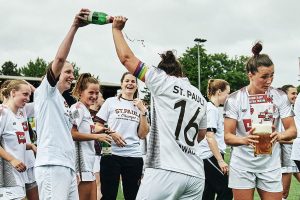 Vor über 4100 Zuschauerinnen ließen die FC St. Pauli 1. Frauen von der ersten Minute an keinen Zweifel, wer im Hoheluft Stadion als Siegerinnen vom Platz gehen sollte. Auch wenn SC Victorias Torfrau Angelina Dick mehrfach grandios halten konnte, war der Druck durch die braun weißen Frauen einfach zu groß. Die tollen Leistungen der letzten Meisterschaftsspiele konnten heute bestätigt werden. Eine Titelverteidigung war der verdiente Lohn.