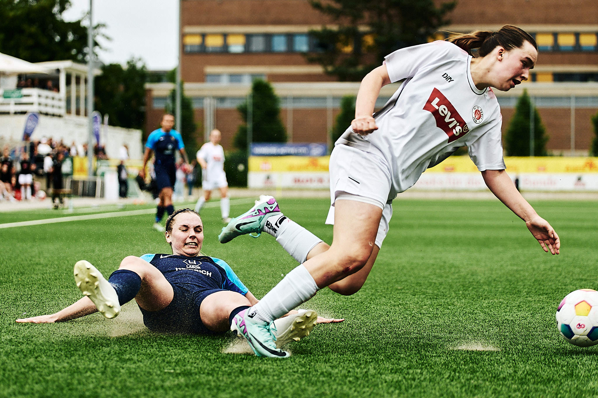 Vor über 4100 Zuschauerinnen ließen die FC St. Pauli 1. Frauen von der ersten Minute an keinen Zweifel, wer im Hoheluft Stadion als Siegerinnen vom Platz gehen sollte. Auch wenn SC Victorias Torfrau Angelina Dick mehrfach grandios halten konnte, war der Druck durch die braun weißen Frauen einfach zu groß. Die tollen Leistungen der letzten Meisterschaftsspiele konnten heute bestätigt werden. Eine Titelverteidigung war der verdiente Lohn.
