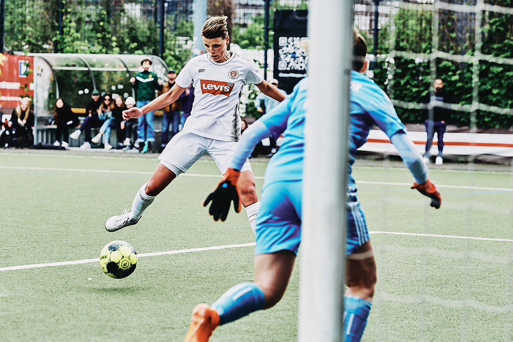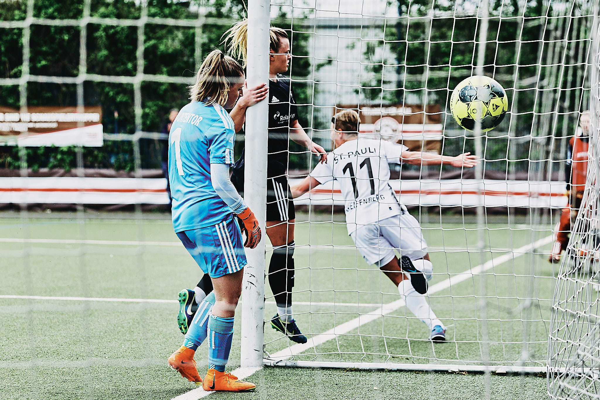 Unter den Augen von Jackson Irvine war der 4:1 Erfolg vom Team der FC St. Pauli 1. Frauen mehr als verdient. Dabei verschoss Anso Greifenberg sogar auch noch einen Elfmeter. Allerdings traf sie vor der Pause zum 1:0 und nach der Pause zum 2:0. Sie sorgte damit für eine Vorentscheidung. Auch sonst war sie ein stetiger Unruheherd in der Abwehr von Buntentor. Julia Hechtenberg traf zum 3:0. Emma Frings wurde gegen Anso Greifenberg eingewechselt und brauchte 8 Minuten auf dem Platz, um sich ebenfalls in die Torschützinnenliste einzutragen. Erst kurz vor dem Schlusspfiff gelang Buntentors Azevedo der Anschlusstreffer.