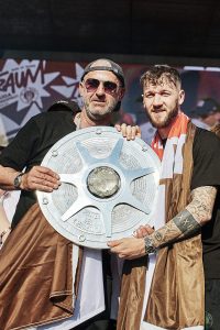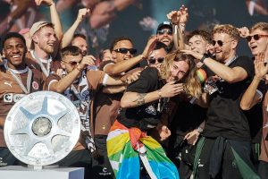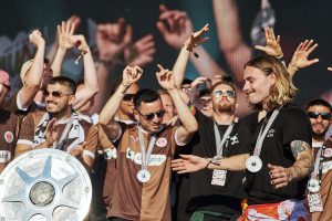 St. Pauli hat die Schale – so ging gestern die Saison 2023/24 dann tatsächlich doch zu Ende. Nicht im Millerntor, sondern auf dem Spielbudenplatz feierte das Team und mehrere Zehntausend Menschen nach 47 Jahren mal wieder eine Meisterschaft in der zweiten Bundesliga. Mit der Übergabe der Meisterschale konnte der Aufstieg gebührend gefeiert werden.