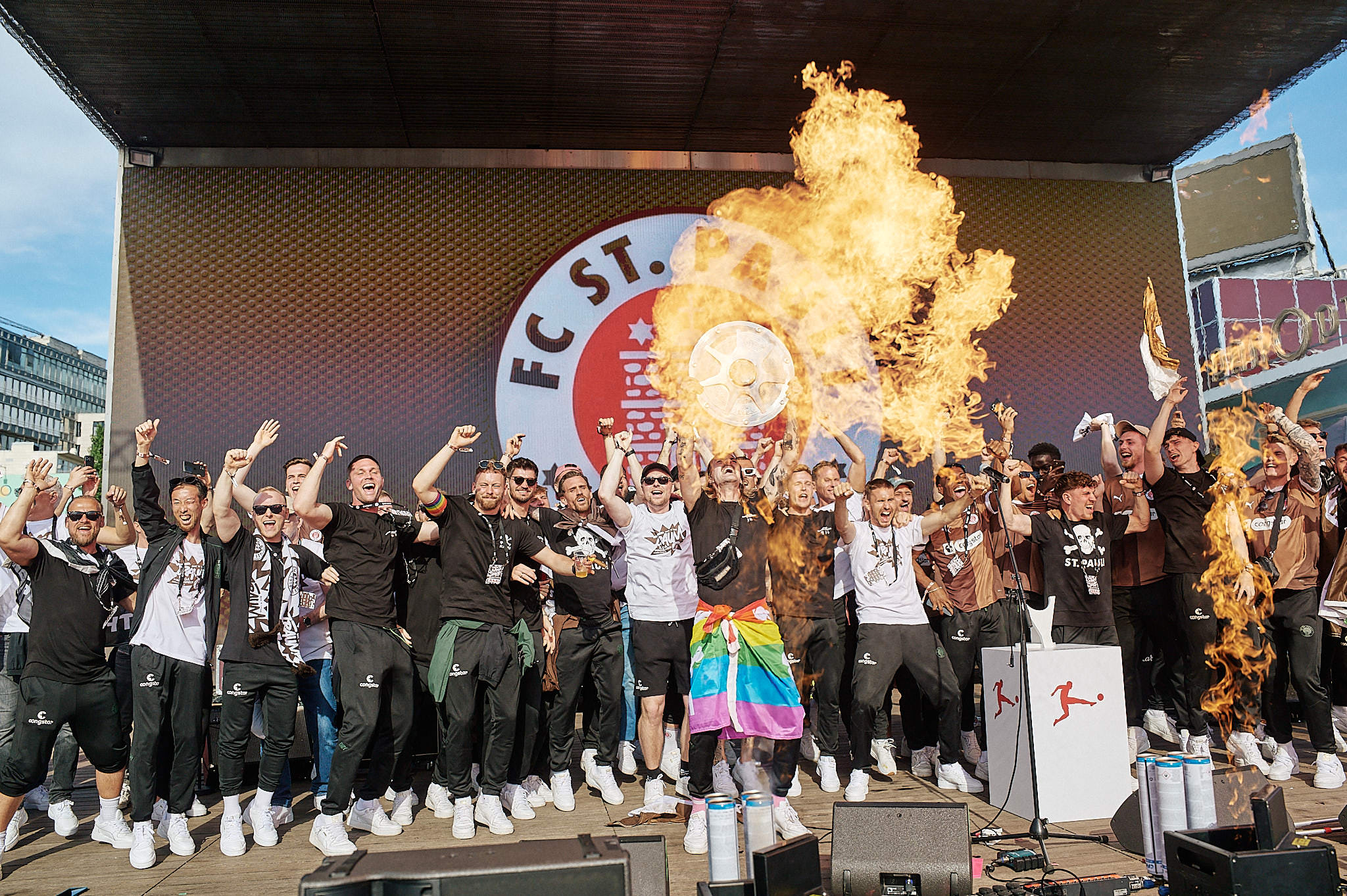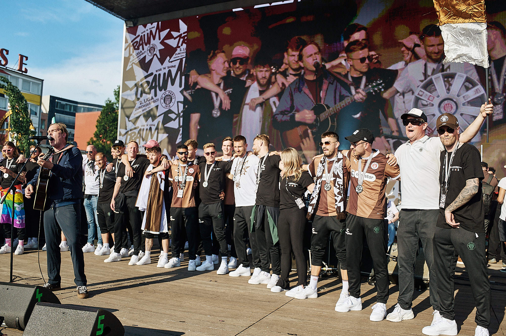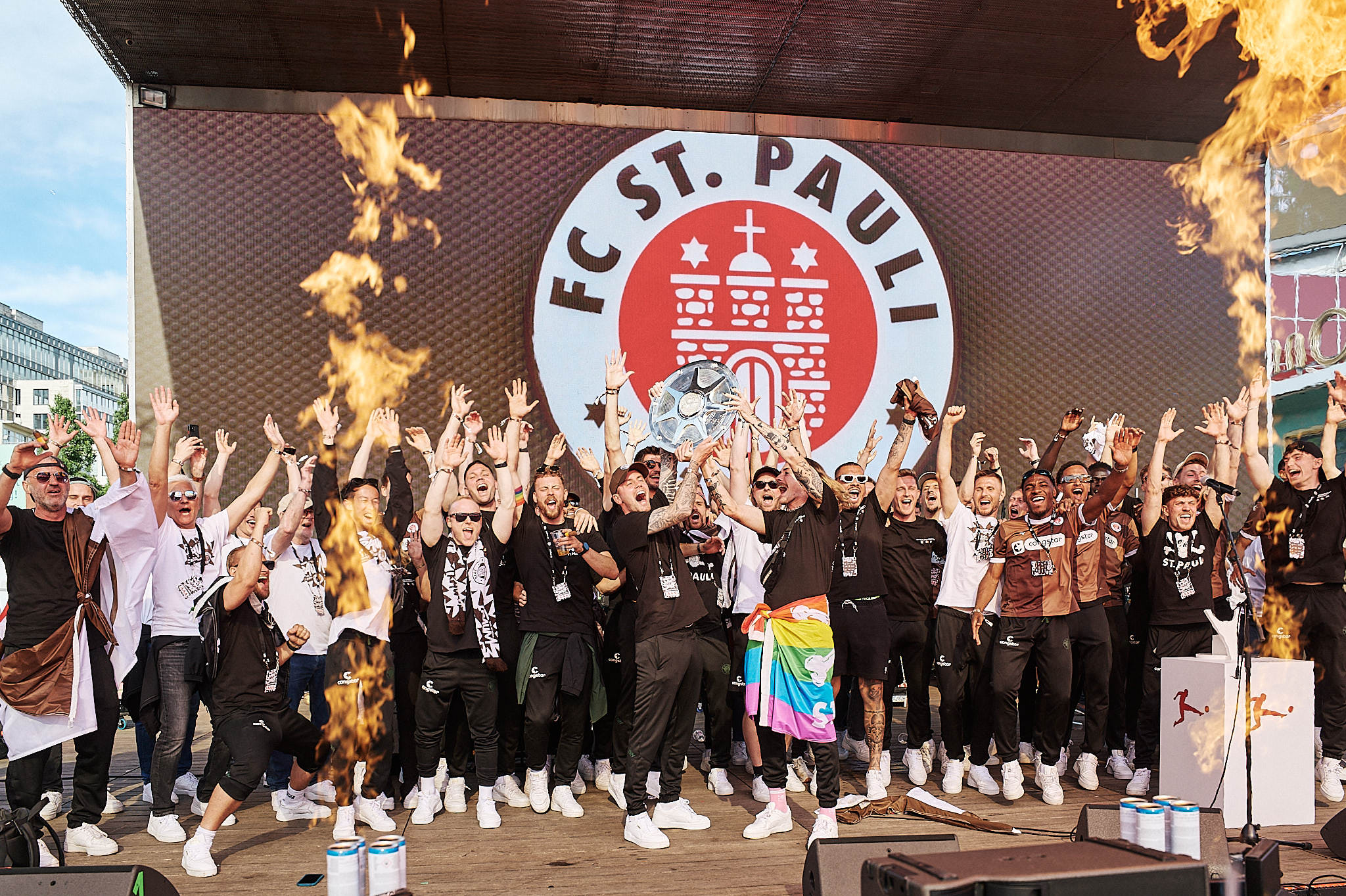 St. Pauli hat die Schale – so ging gestern die Saison 2023/24 dann tatsächlich doch zu Ende. Nicht im Millerntor, sondern auf dem Spielbudenplatz feierte das Team und mehrere Zehntausend Menschen nach 47 Jahren mal wieder eine Meisterschaft in der zweiten Bundesliga. Mit der Übergabe der Meisterschale konnte der Aufstieg gebührend gefeiert werden.