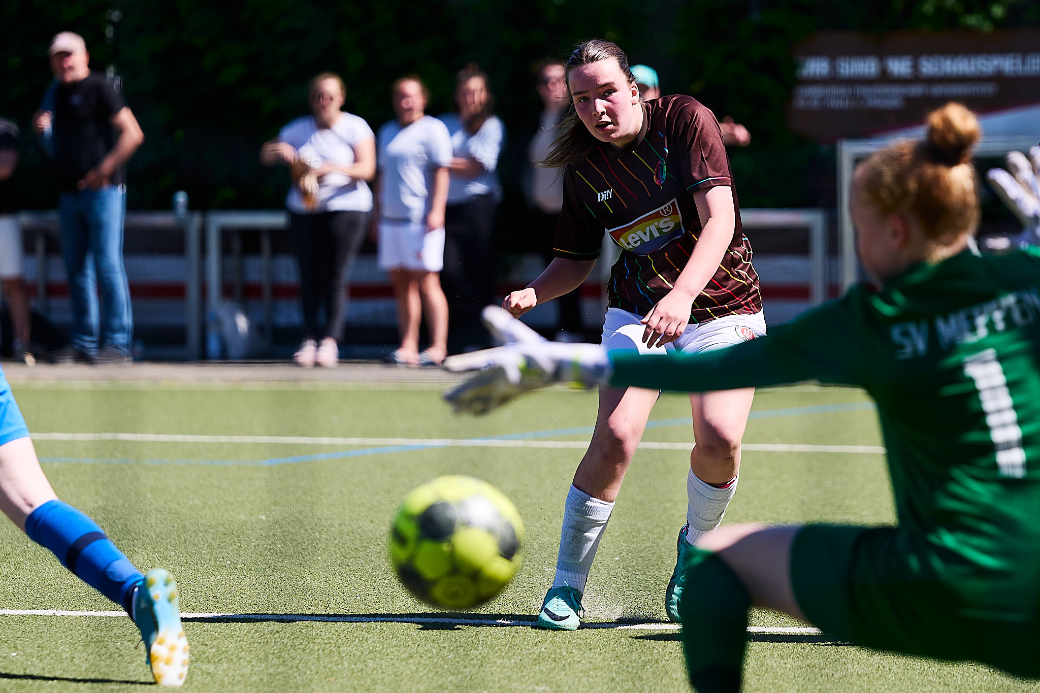 Wunderschön – und leider schwierig in einem Bild einzufangen – der Traumfreistoß ins lange Eck von Janice Hauschild. Sie erzielt damit ihren ersten Treffer für die 1. Frauen und krönt damit ihre Leistungen der letzten Spiele. Glückwunsch!