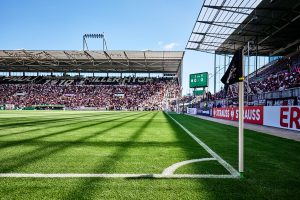 Im DFB-Pokal traf der Stadtnachbar aus Norderstedt in seinem Heimspiel auf den FC St. Pauli im Millerntor. Der Pokal hat eben seine eigenen Gesetze. Deswegen gab es auch andere Werbebanden, die leider noch höher waren, als sie es normalerweise schon sind. Das macht keine schönen Bilder – interessiert aber nur die Fotografinnen. Glücklicherweise gab es keine Banden vor der Gegengerade, weswegen die meisten dort saßen – ich auch.