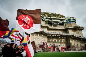 Schön waren die unterstützenden Sprechchöre für St. Pauli vom Bunker von Mainzer Fans. Auch schön waren die vielen neutralen Fussballinteressierten, die im Vorbeigehen zwischen Feldarena und Bunker ob des guten Niveaus stehen blieben. Und natürlich war es schön, dass so viele Fans bei nasskaltem und windigem Wetter den Weg an den Spielfeldrand gefunden haben.