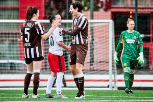 Erst am 5. Spieltag der Regionalliga Nord bekommen die 1. Frauen vom FC St. Pauli ein Heimspiel. Dies findet dann unter großer Zuschauerzahl ausgerechnet gegen die Tabellenführerinnen aus Henstedt-Ulzburg statt. Da das Team in braun-weiß aktuell Tabellenletzte ist, waren die Vorzeichen vor dem Spiel eigentlich klar. Es wurde ein gutes Spiel mit Chancen auf beiden Seiten, aber keinen Toren.
