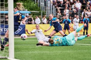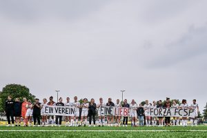 Heute lief zunächst für braun-weiß alles nach Plan. Nach einer guten Viertelstunde führten die 1. Frauen vom FC St. Pauli nach zwei Fehlern in der Abwehr von SC Victoria schon mit 2:0. Als alles nach einem wiederholten Erfolg für St. Pauli aussah, kam ein Kacktor erster Güte dazwischen. Die Torhüterin der braun-weißen Tara Zimmermann schoss einen Befreiungsschlag direkt an den Kopf einer Stürmerin von Victoria. Celina Witt schaltete schnell und schon zum Anschlusstreffer ein.