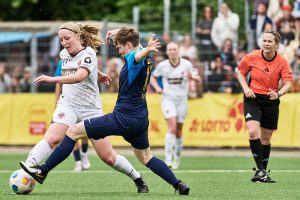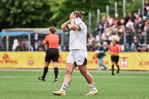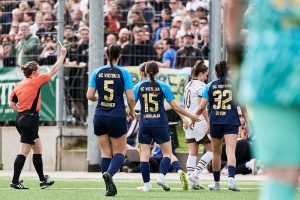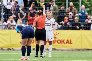 Das noch ein harter Nachmittag folgen sollte, wurde dann nach zwei kleineren Fouls von Linnea Taube deutlich. Innerhalb von vier Minuten kassierte sie von Schiedsrichterin Jacqueline Herrmann zweimal gelb und musste folgerichtig raus. Eine viel zu harte Entscheidung – und nicht die einzige Fehlentscheidung der Unparteiischen.